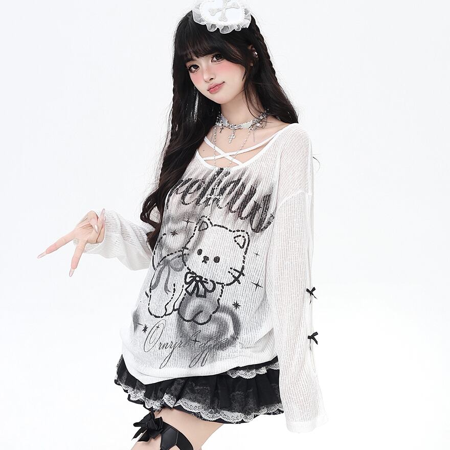 関連キーワード: #サブカル系 #地雷系 #Y2Kファッション #グランジ #長袖Tシャツ #ダメージニット #猫プリント #闇かわいい #原宿ファッション #オーバーサイズ #リボン #クロスストラップ