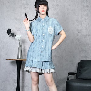 関連キーワード: #チャイナ風 #中華服 #中華系ファッション #サブカル #地雷系 #パンツ #キュロット #ショートパンツ #ダイダイ柄 #タイダイ #フリル #水色 #夏服 #カジュアル #セットアップ可能 #古怪舎