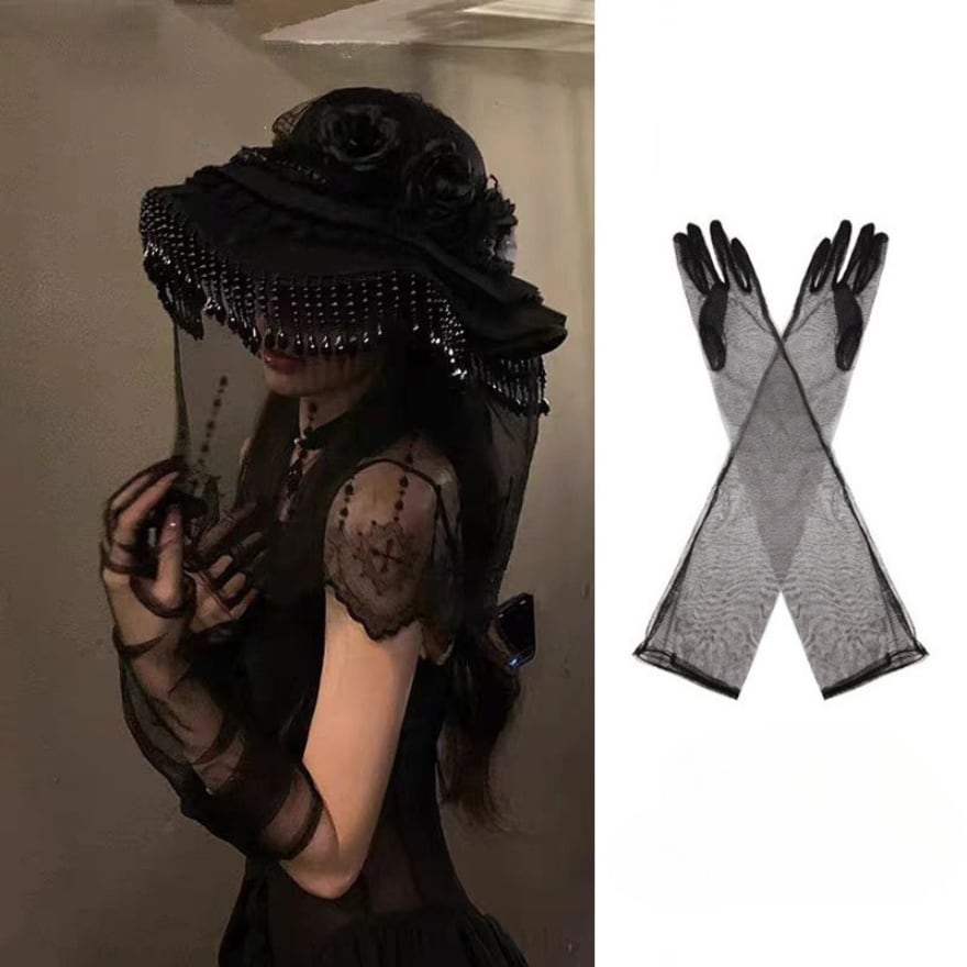 ゴスロリ通販 With U ゴスロリファッション ロンググローブ メッシュ ゴスロリ 薄手
