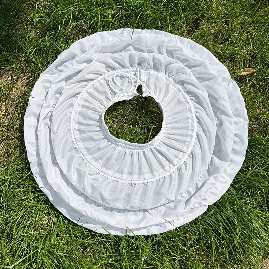 内蔵された3段の強力なワイヤーが、スカートを美しい釣鐘状(ベルライン)に広げ、この上なくドラマティックなシルエットを創り出します。重い生地のスカートでも沈むことなく、一日中完璧な形をキープ。まさに「スーパーキャノピー(天蓋)」の名にふさわしい、究極のボリューム感です。