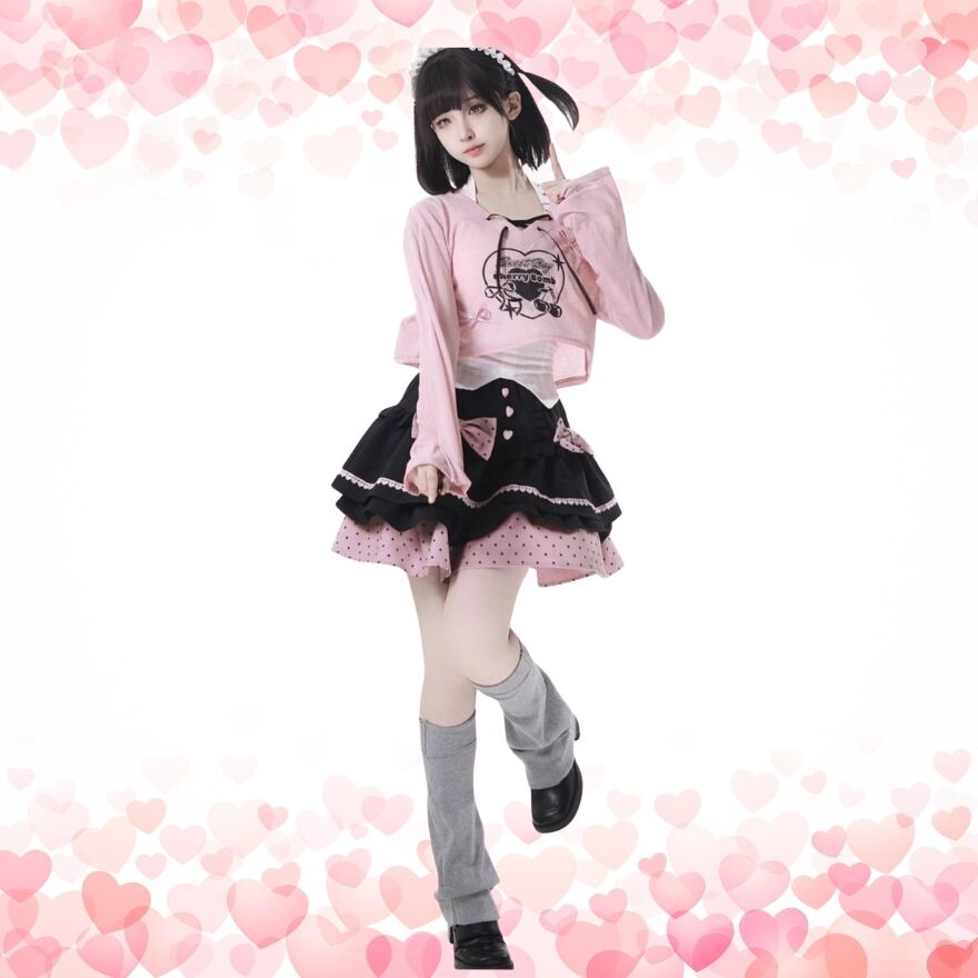 ゴスロリ通販 With U ゴスロリ 地雷系 ピンク 長袖シャツ ショート丈 pinksavior