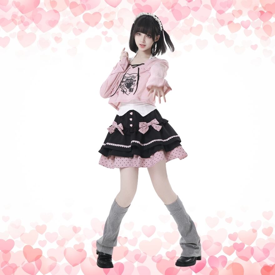 関連キーワード: #ロリィタ #ロリータファッション #甘ロリ #可愛い #ピンク #黒 #レースアップ #リボン #フリル #ドット柄 #フェミニン #デート #お出かけ #セットアップ