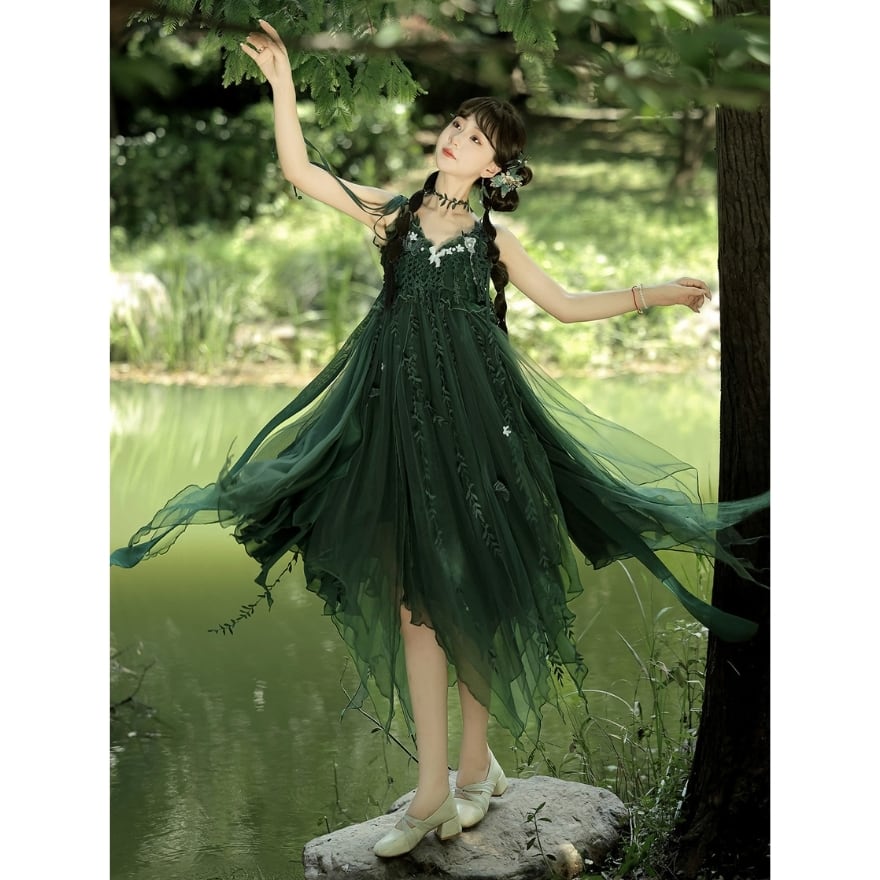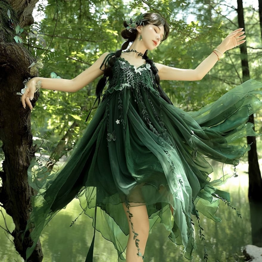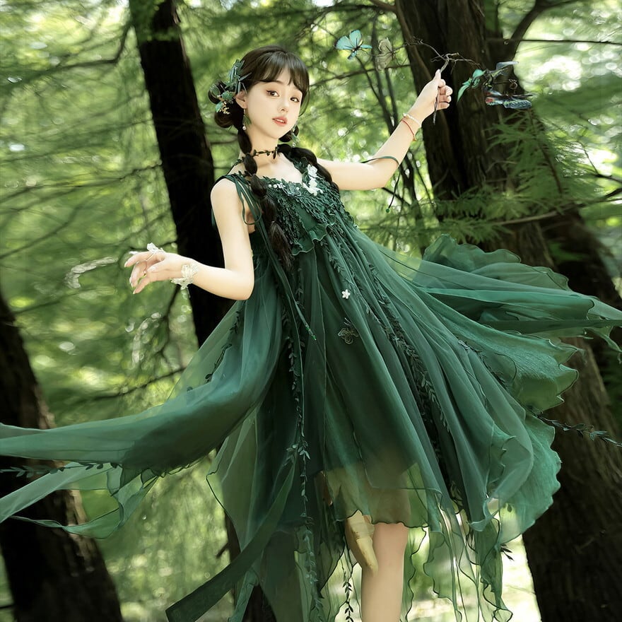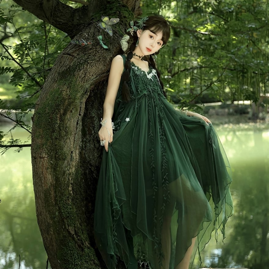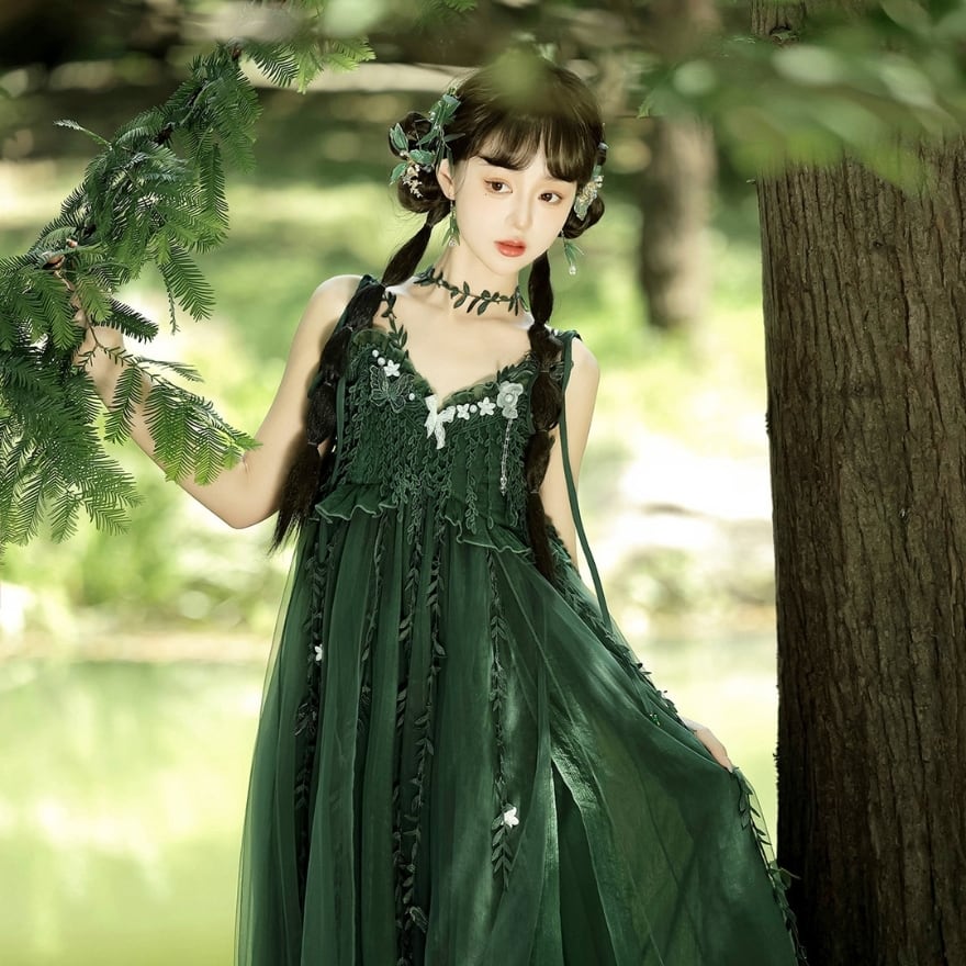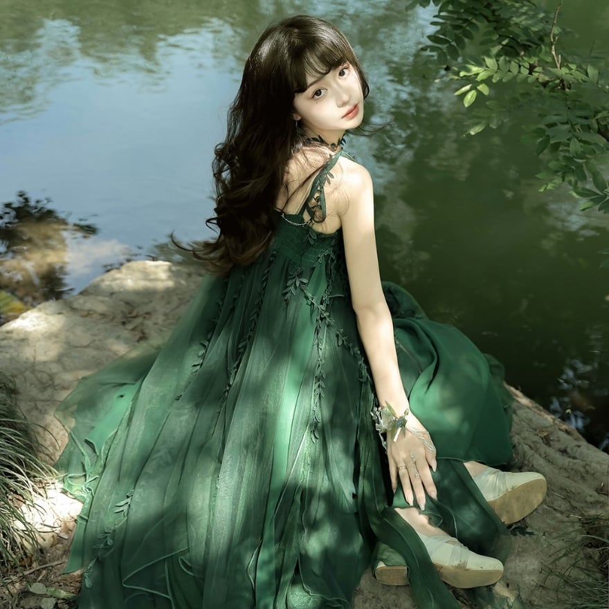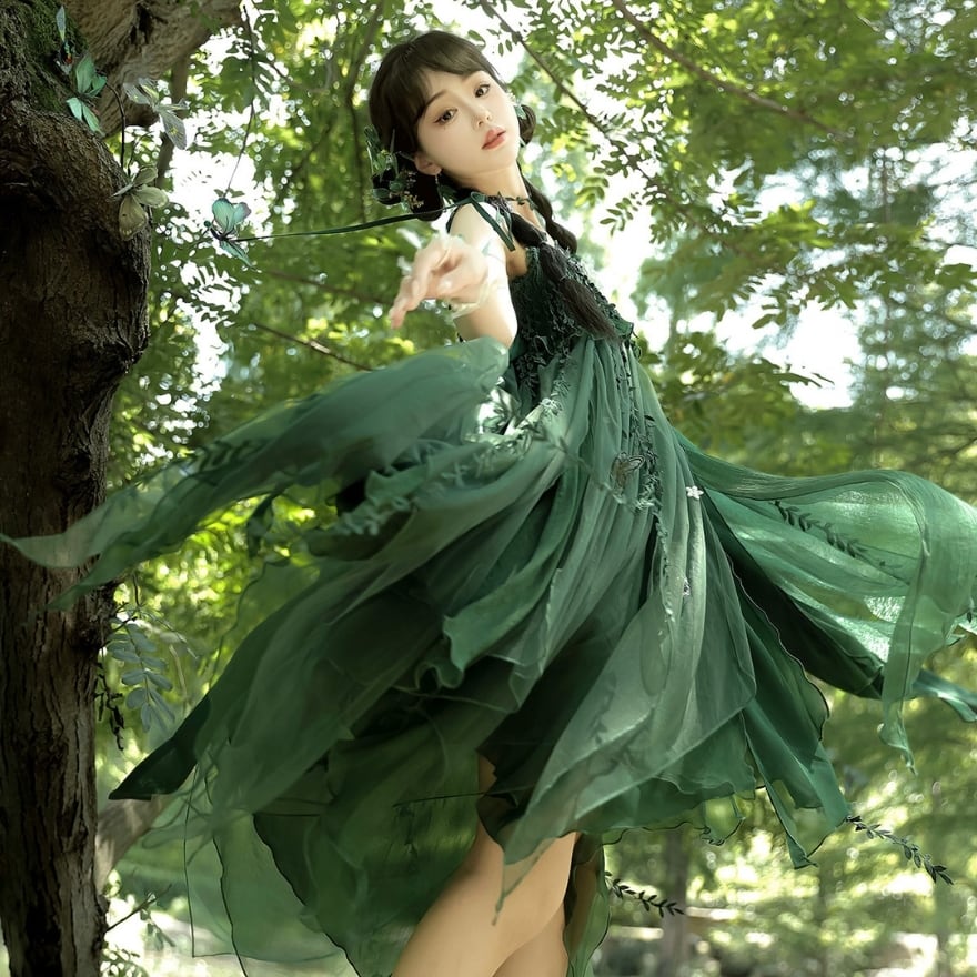 関連キーワード: #中華ロリィタ #ロリィタファッション #グリーン #森ガール #妖精 #刺繍 #シフォン #エレガント #幻想的 #撮影会 #特別な日 #ドレス