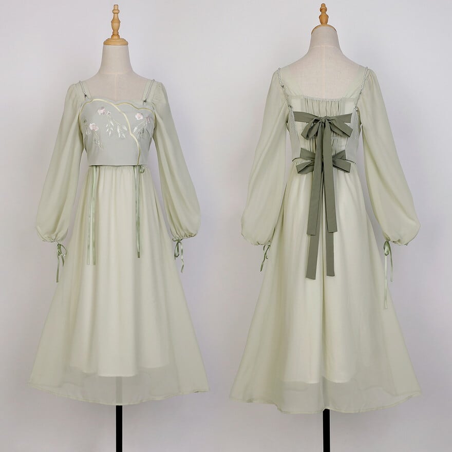 関連キーワード: #中華ロリィタ #ロリィタファッション #普段使い #セットアップ #ビスチェ #ワンピース #ミントグリーン #刺繍 #リボン #上品 #フェミニン #着回しコーデ