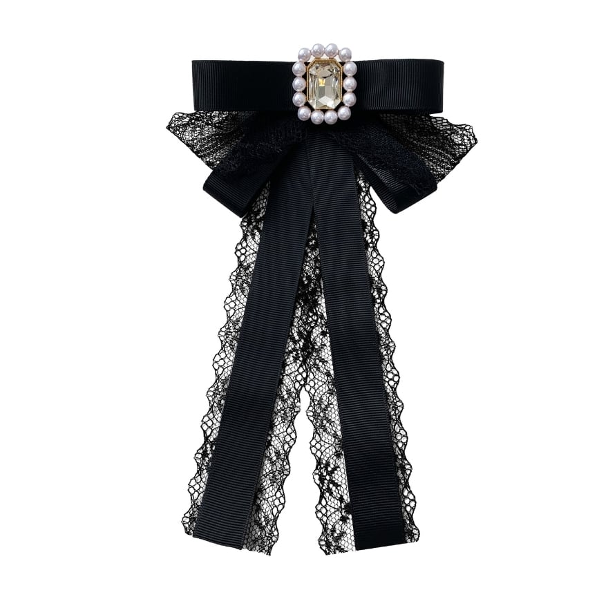 ◆リボンブローチ付きのフリルレースの半袖ブラウスです