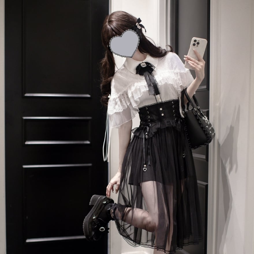 関連キーワード: #ロリータ #クラロリ #セットアップ #モノトーン #レース #エレガント #シック #可愛い #ギンガムチェック