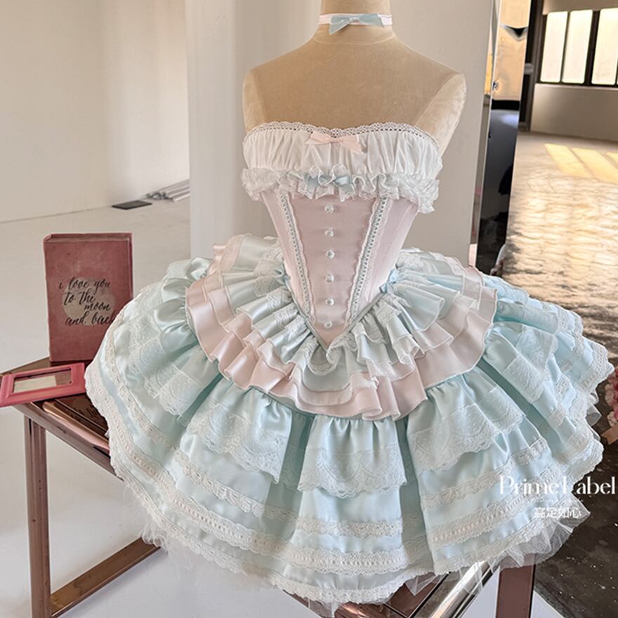 関連キーワード: #ロリータ #スイートロリータ #ドレス #ミントブルー #ピンク #レース #可愛い #ドーリー