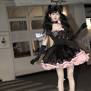 関連キーワード: #ロリータ #ロリィタ #ジャンパースカート #ブラック #ピンク #甘辛 #ゴスロリ #可愛い #小悪魔 #リボン #フリル