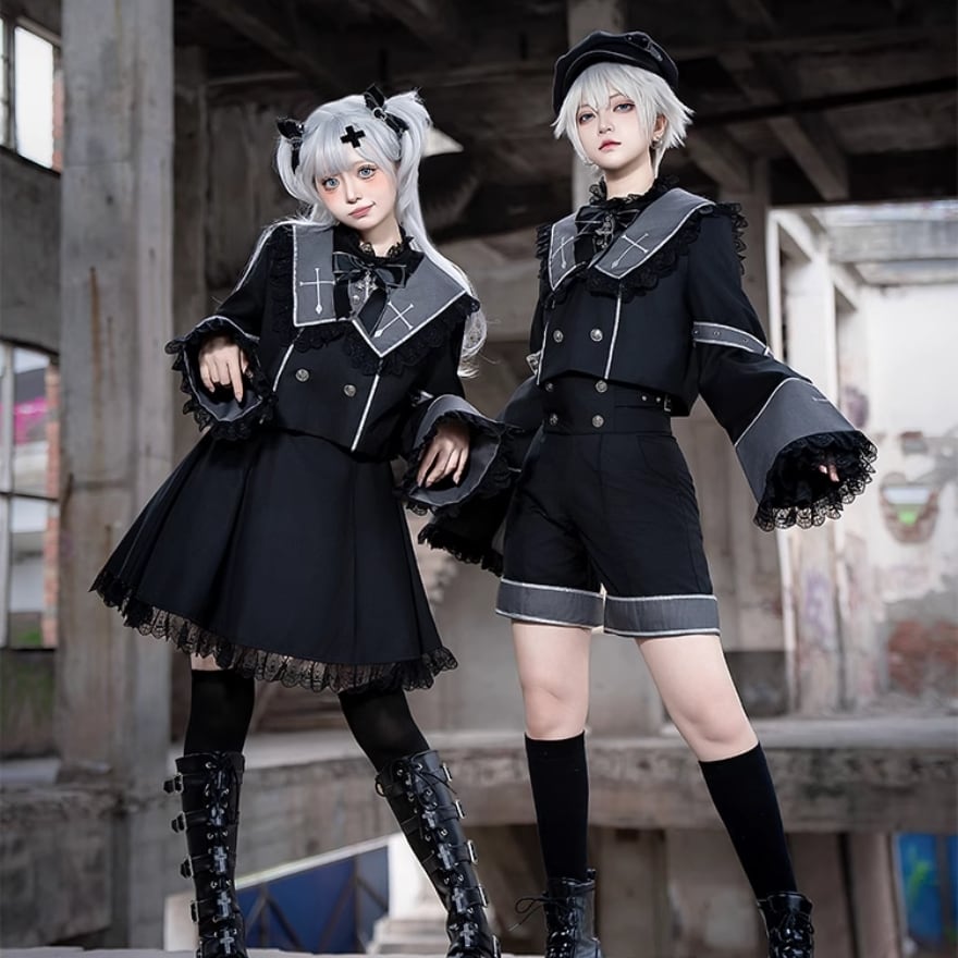 関連キーワード: #ゴスロリ #王子系 #男装 #コンカフェ #衣装 #ジャケット #ショート丈 #テーラード #中性的 #コスプレ