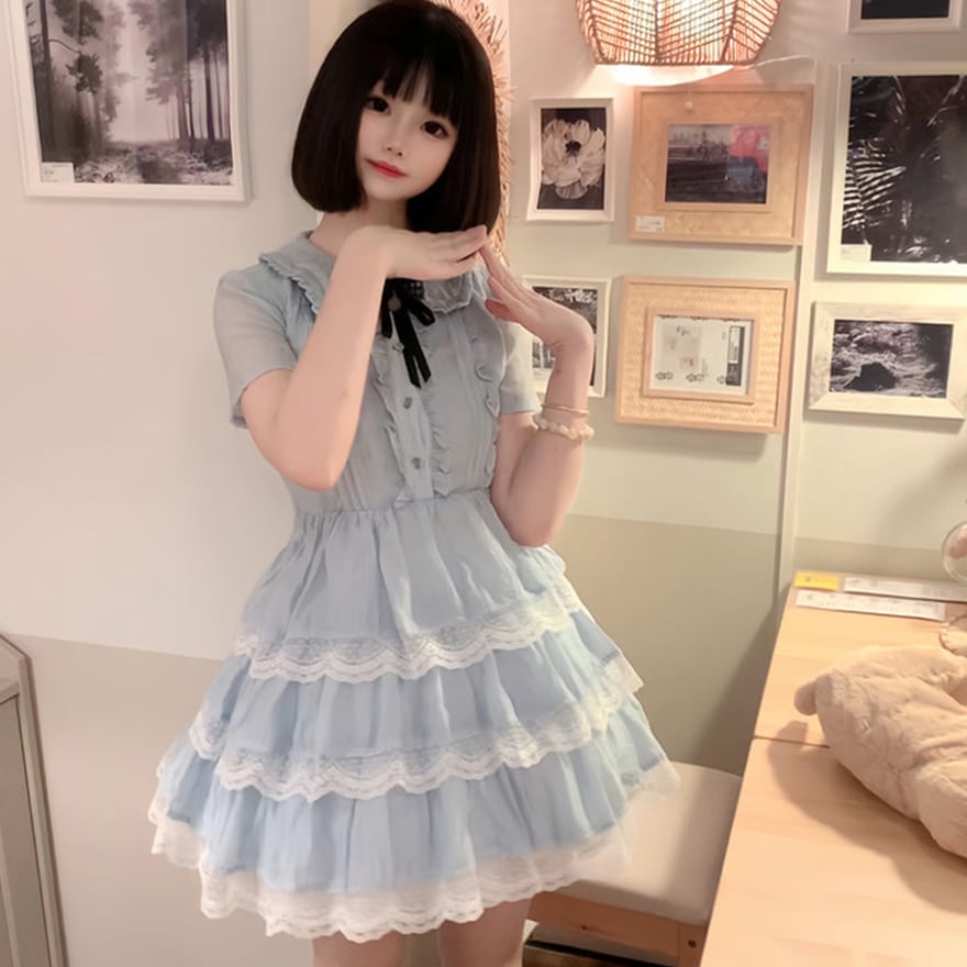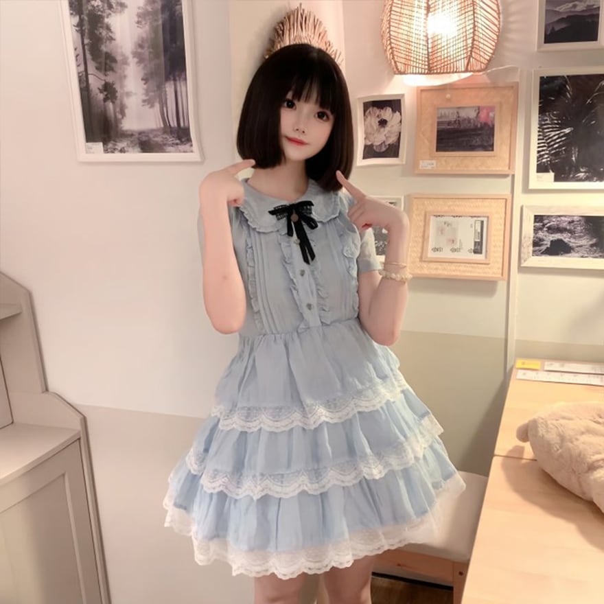ゴスロリ通販 With U 夢かわいい 量産型 半袖 ワンピース ネックリボン フリル