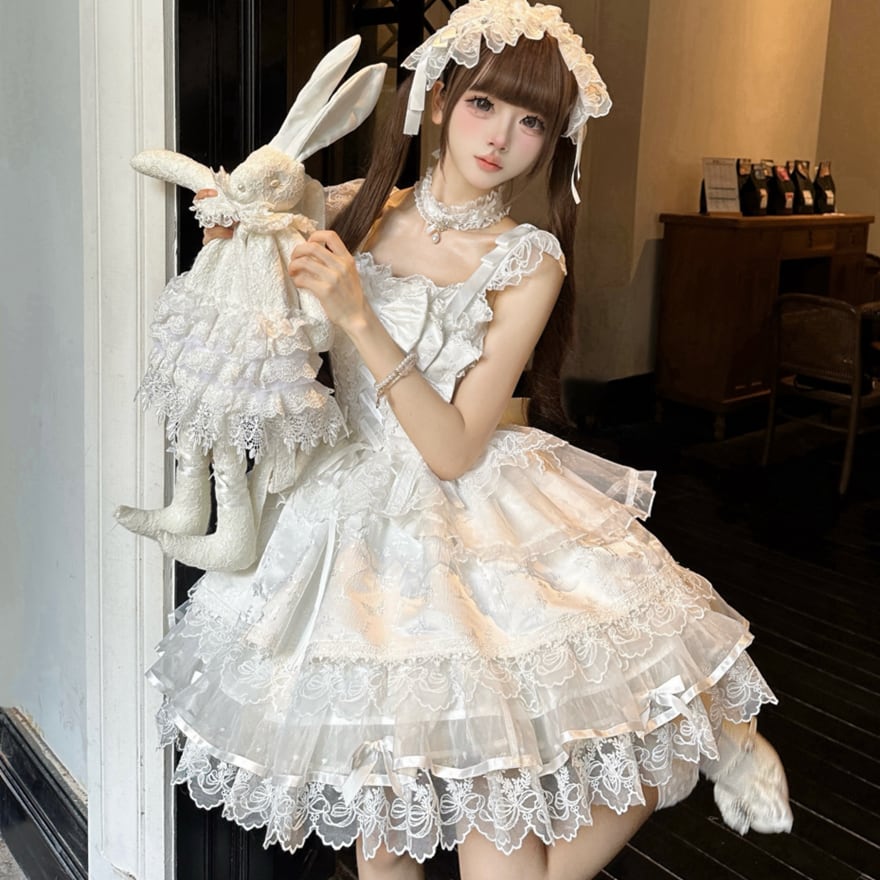 ゴスロリ通販 With U 夢かわいい ホワイトロリィタ ジャンパースカート レース ふわふわ スカート