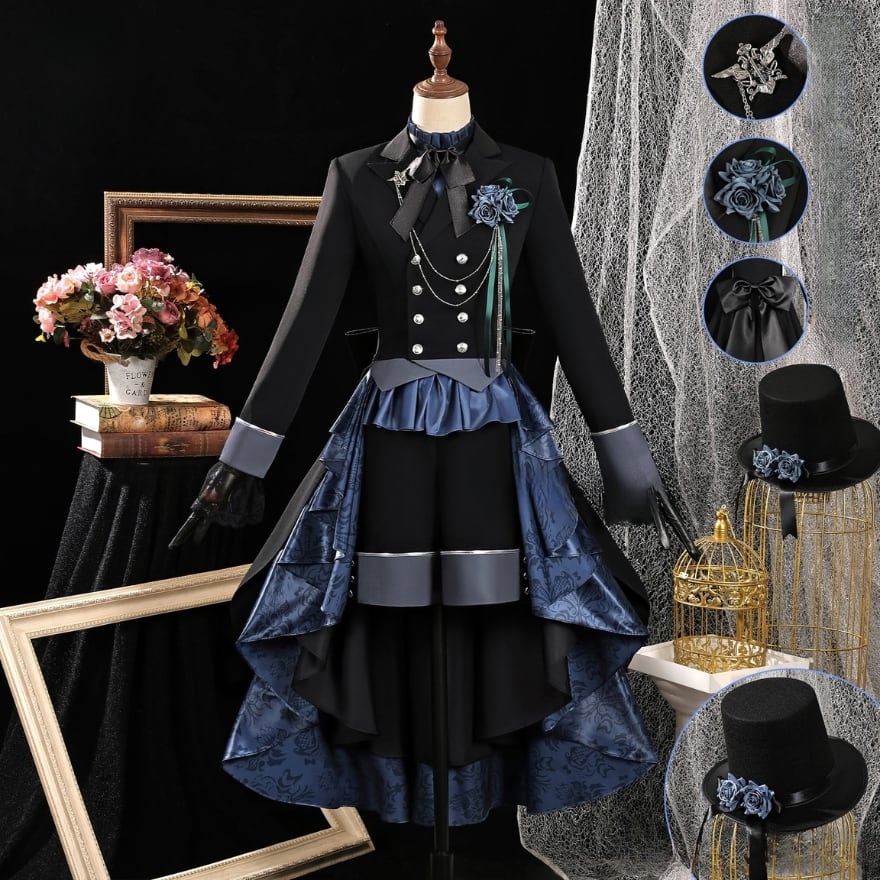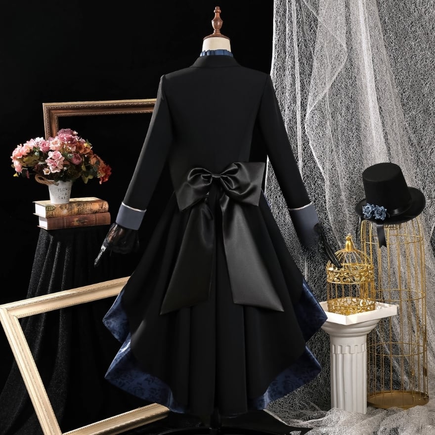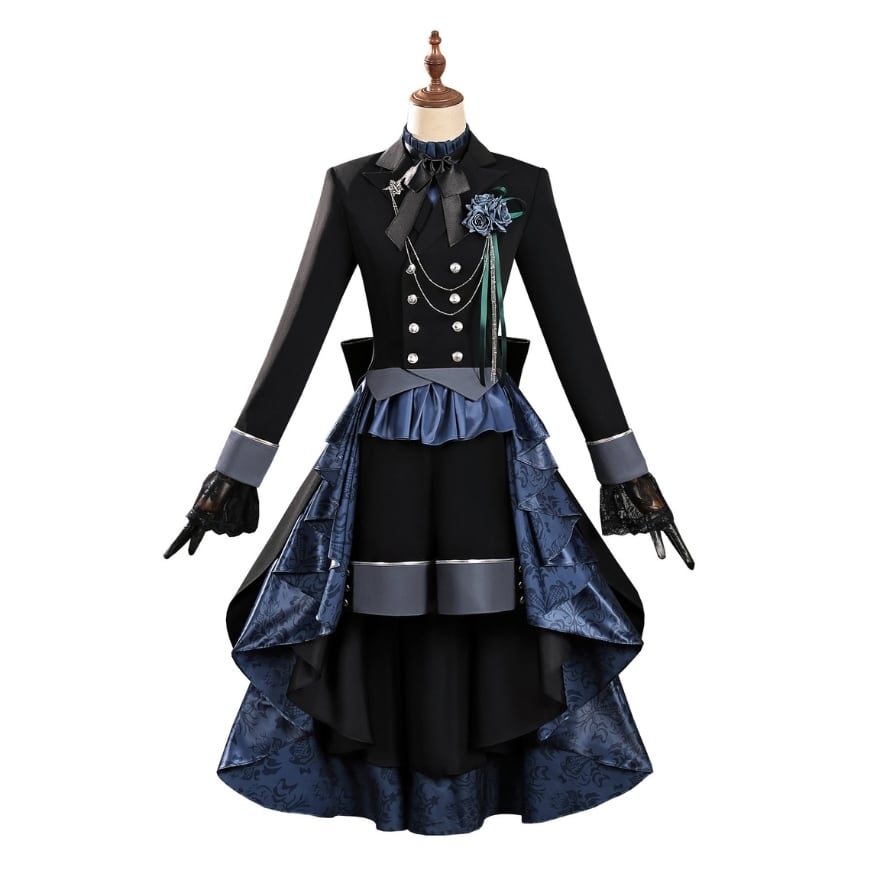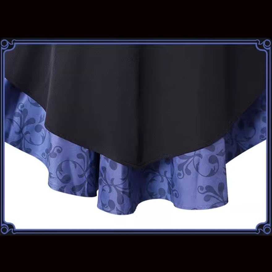 黒を基調としたジャケットと、青い模様が入ったスカートの組み合わせが、高貴でミステリアスな雰囲気を醸し出しています。