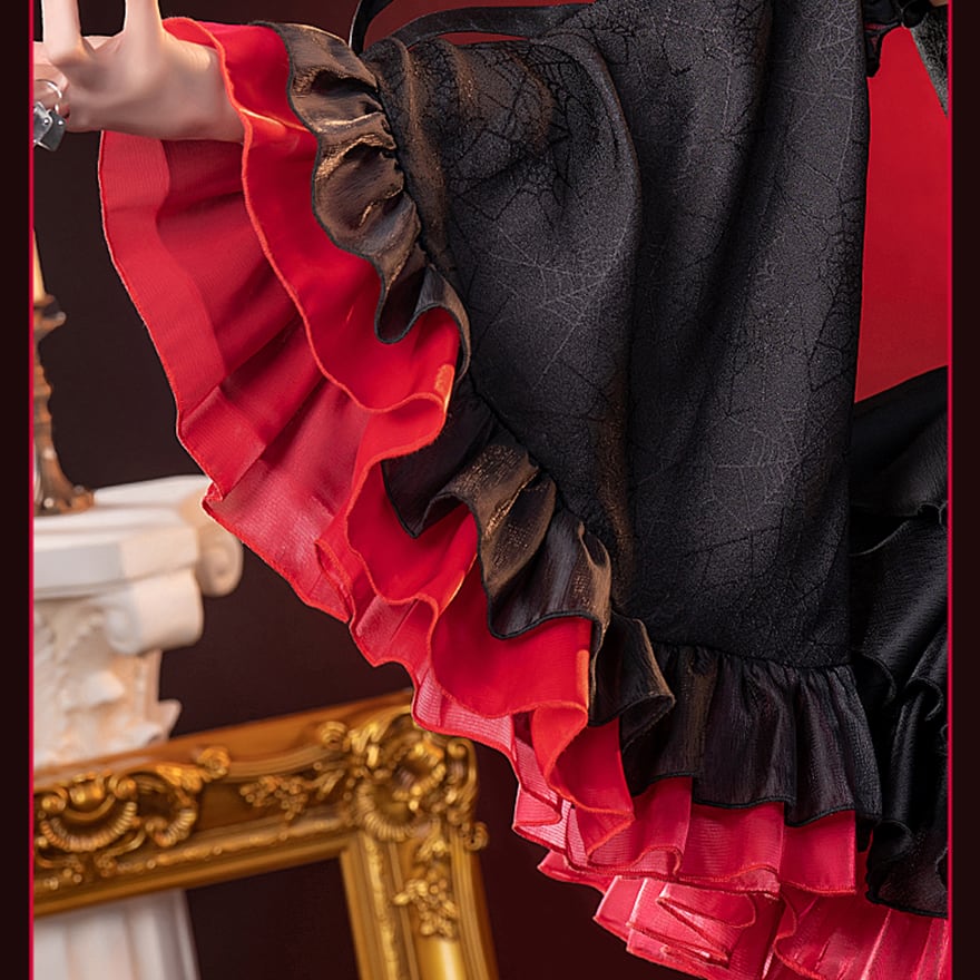 フリルやレースをふんだんに使用したティアードスカートが、可愛らしさとセクシーさを両立させます。