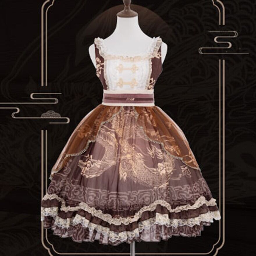 ゴスロリ通販 With U ジャンパースカート 中華ロリィタ ドラゴン柄 レトロ プリント チャイナ風