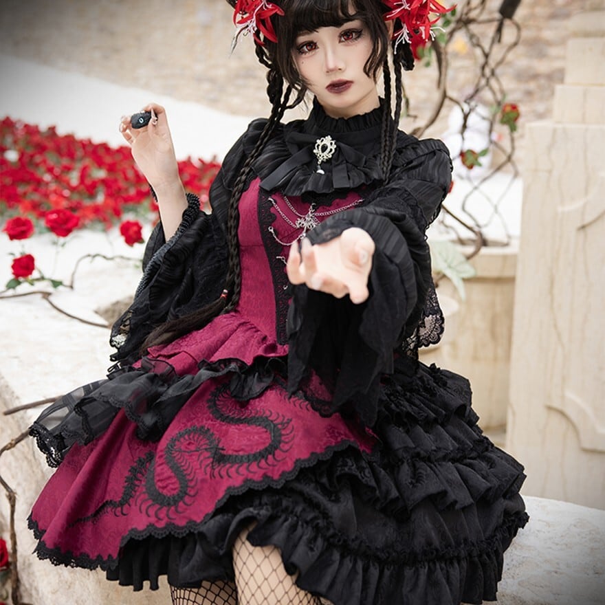 華やかさと退廃的な美しさが融合した、ゴスロリの魅力を最大限に引き出すジャンパースカート。