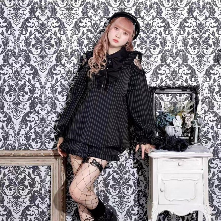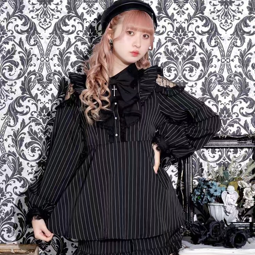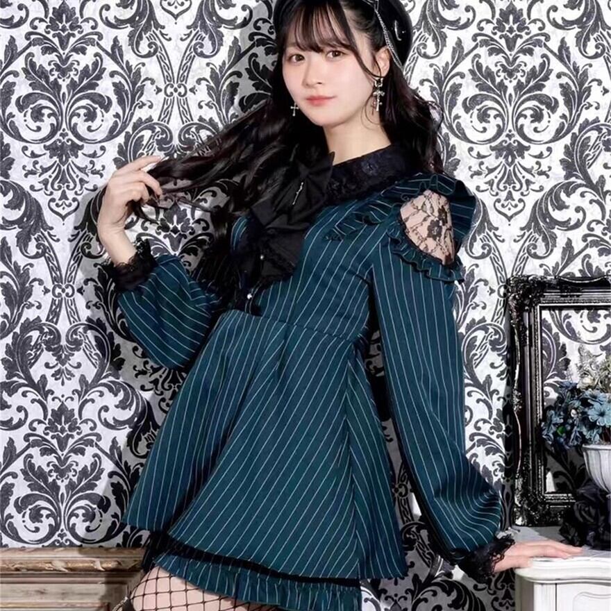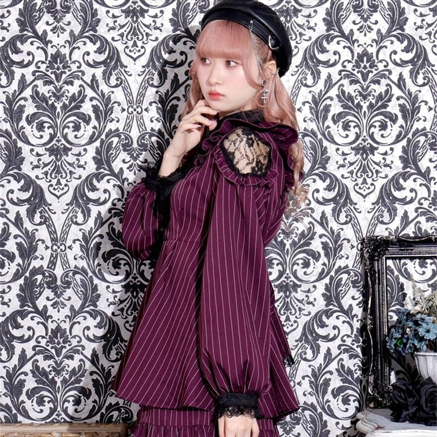 関連キーワード: #ロリータ #ゴスロリ #ゴシック #セットアップ #ストライプ #フリル #可愛い #シック