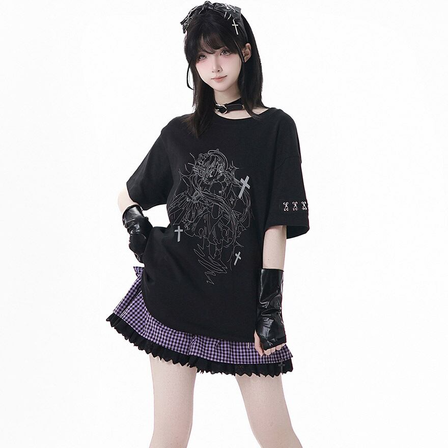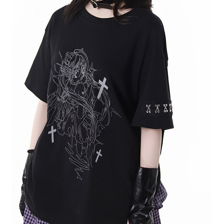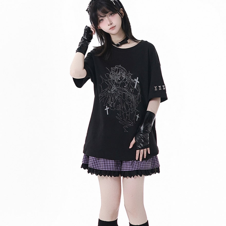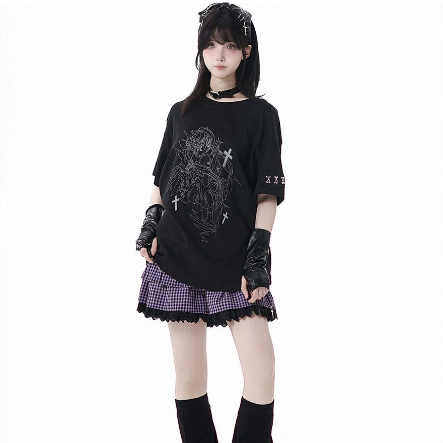 関連キーワード: #サブカル #地雷系 #Y2K #pinksavior #ストリートファッション #半袖Tシャツ #オーバーサイズ #イラスト #十字架 #クロス #病みかわ #天使界隈 #ゴシック #V系
