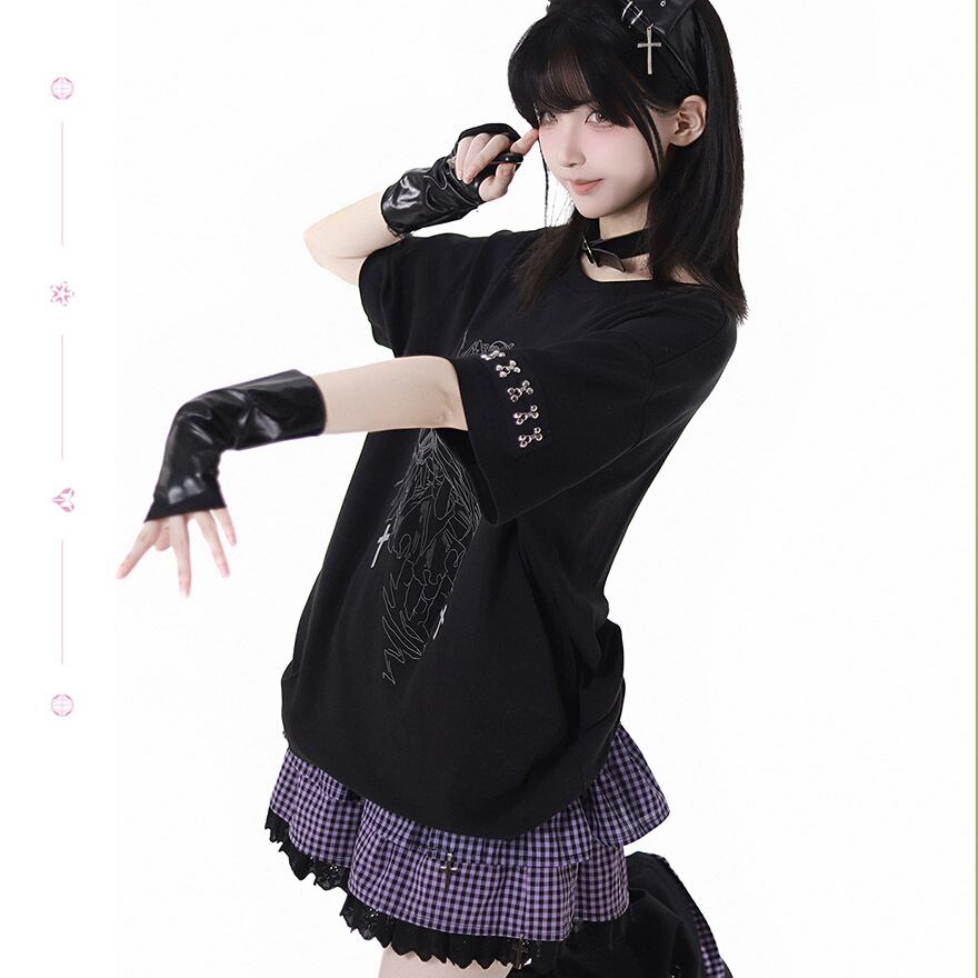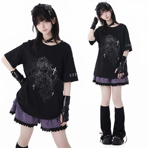 ゴスロリ通販 With U 地雷 半袖 Tシャツ イラスト パンク 参戦服