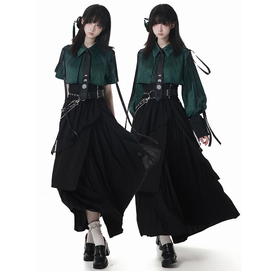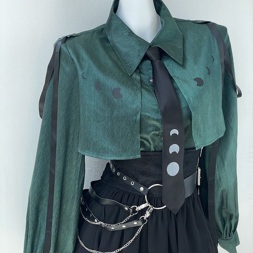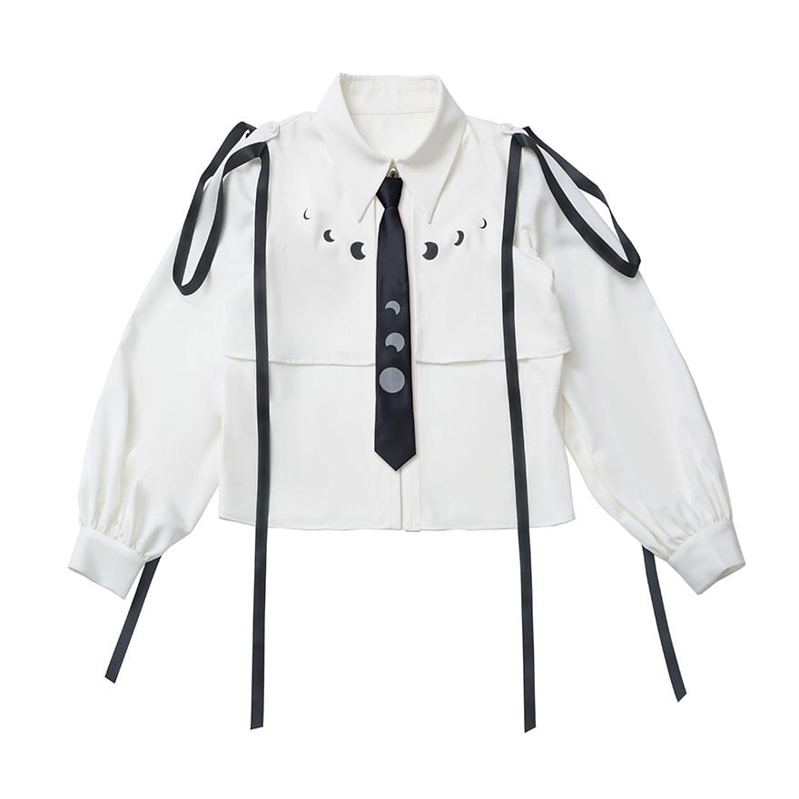 関連キーワード: #サブカル #地雷系 #Y2K #長袖シャツ #ブラウス #ネクタイ付き #個性的 #ストリートファッション #モード系 #サイバー #病みかわいい #ボリュームスリーブ #クロップド丈 #月モチーフ