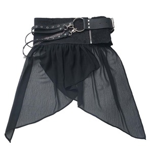 パンクテイストの幅広ベルトに、繊細なレースと軽やかなシアー素材をドッキングさせた個性的なウエストカバーです。