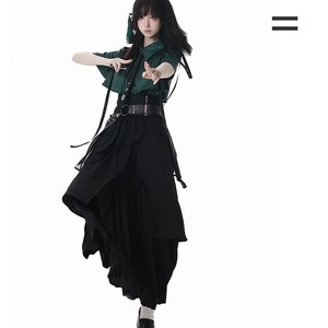 歩くたびにひらひらと揺れる裾が、ミステリアスでドラマティックな足元を演出します。