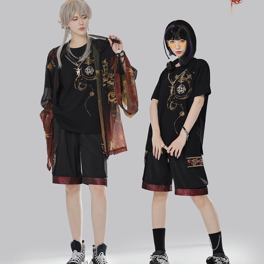 関連キーワード: #チャイナ風 #中華服 #ハーフパンツ #カーゴパンツ #ストリートファッション #Y2K #サブカル #刺繍 #ユニセックス #男女兼用 #卿棠 #個性的 #黒 #赤