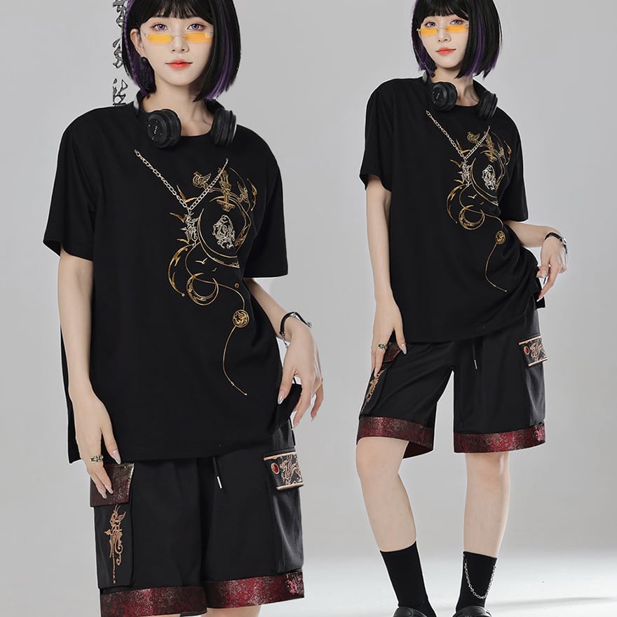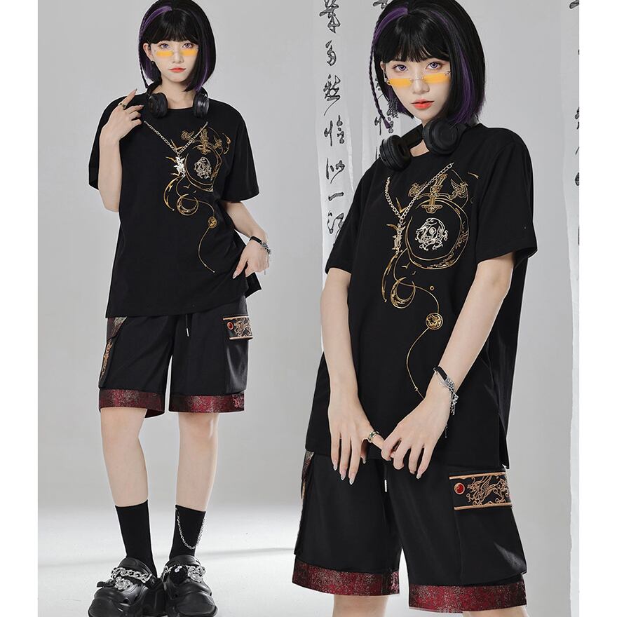 関連キーワード: #チャイナ風 #中華服 #ストリートファッション #Y2K #サブカル #Tシャツ #刺繍 #ユニセックス #男女兼用 #オーバーサイズ #卿棠 #山海経 #個性的 #黒