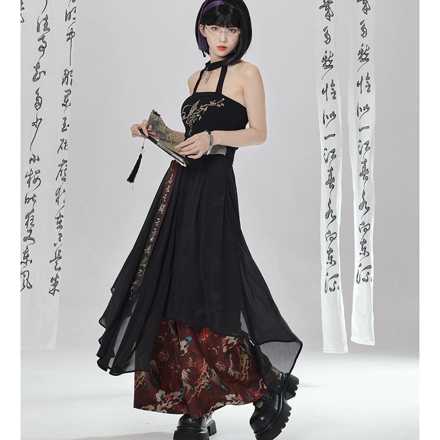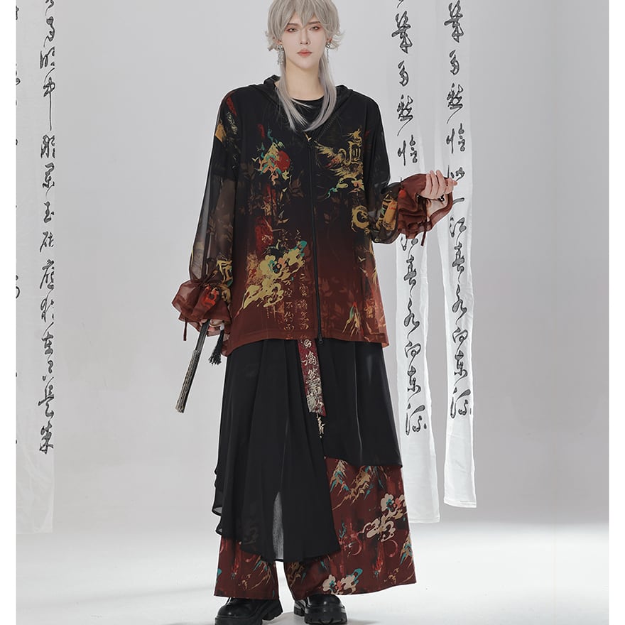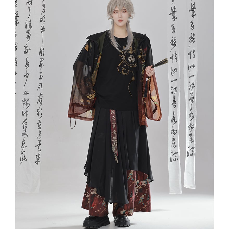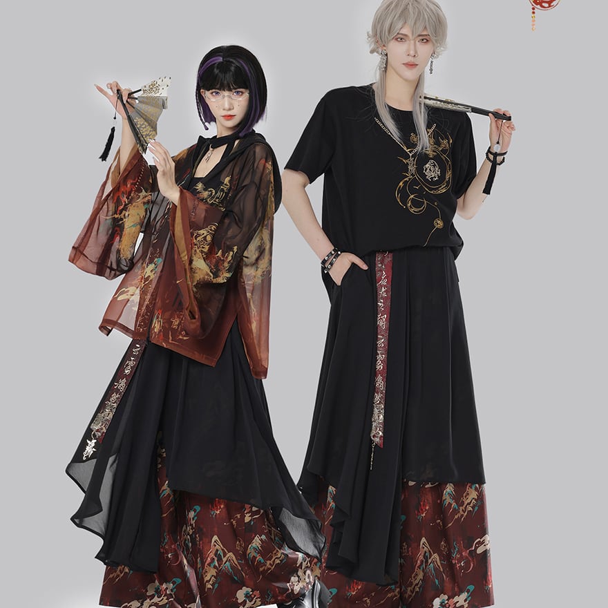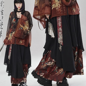 関連キーワード: #チャイナ風 #中華服 #ワイドパンツ #袴パンツ #ストリートファッション #Y2K #サブカル #モード系 #アシンメトリー #レイヤード #プリント #刺繍 #ユニセックス #男女兼用 #卿棠 #山海経 #個性的 #黒