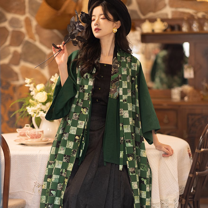 関連キーワード: #チャイナ風 #中華服 #羽織 #小羽織 #ショート丈 #ジャケット #刺繍 #花柄 #レトロ #クラシカル #Y2Kファッション #池夏 #グリーン #緑 #上品 #個性的
