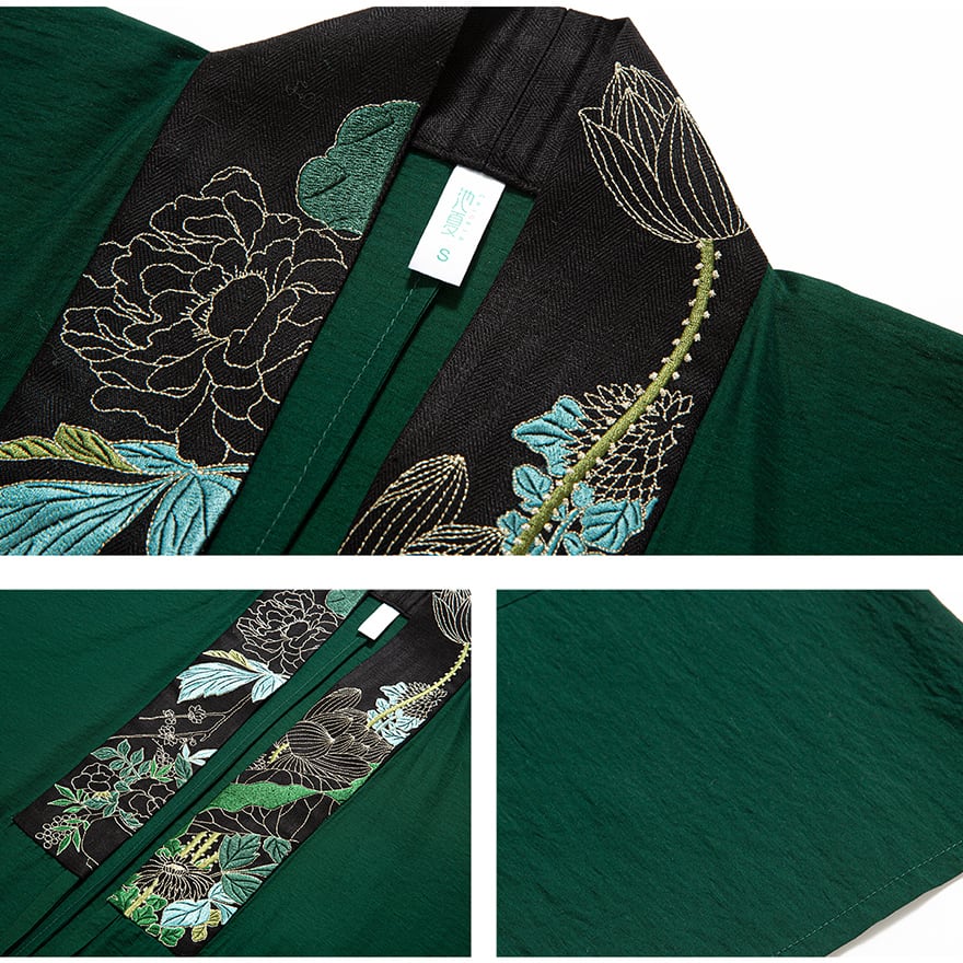 深緑と漆黒を基調とし、刺繍や市松模様、繊細な地紋など、それぞれのアイテムにこだわりのディテールが詰まっています。