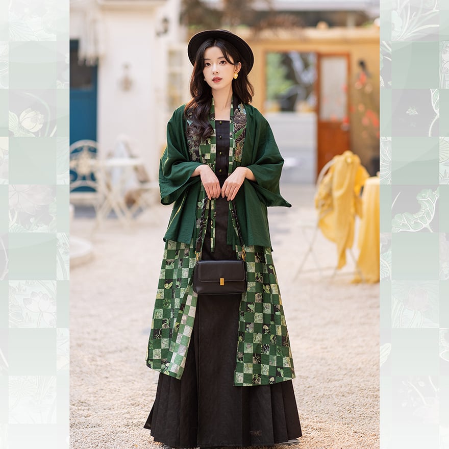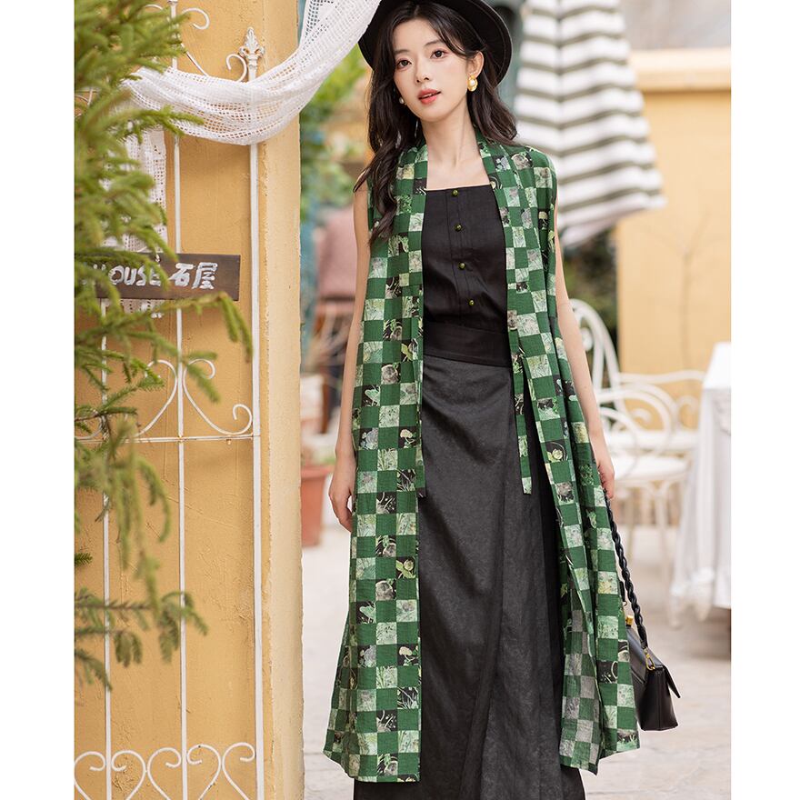 関連キーワード: #チャイナ風 #中華服 #漢服 #セットアップ #コーディネートセット #4点セット #羽織 #ジレ #キャミソール #ロングスカート #レトロ #クラシカル #池夏 #Y2Kファッション #レイヤード #重ね着 #グリーン #黒