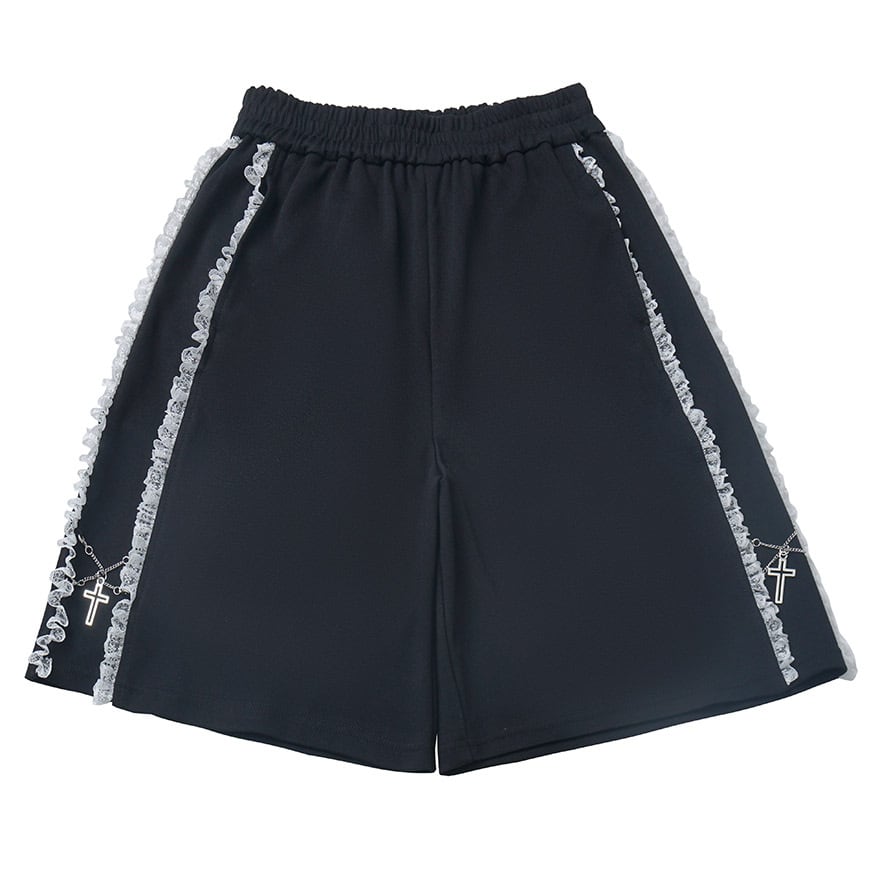 ボーイッシュなハーフパンツに、フリルと十字架という甘くダークな要素をプラスした、絶妙な甘辛MIXデザインが魅力。