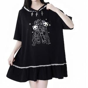 フリルには十字架のチャーム付きチェーンが飾られ、動くたびに揺れてゴシックなアクセントに。