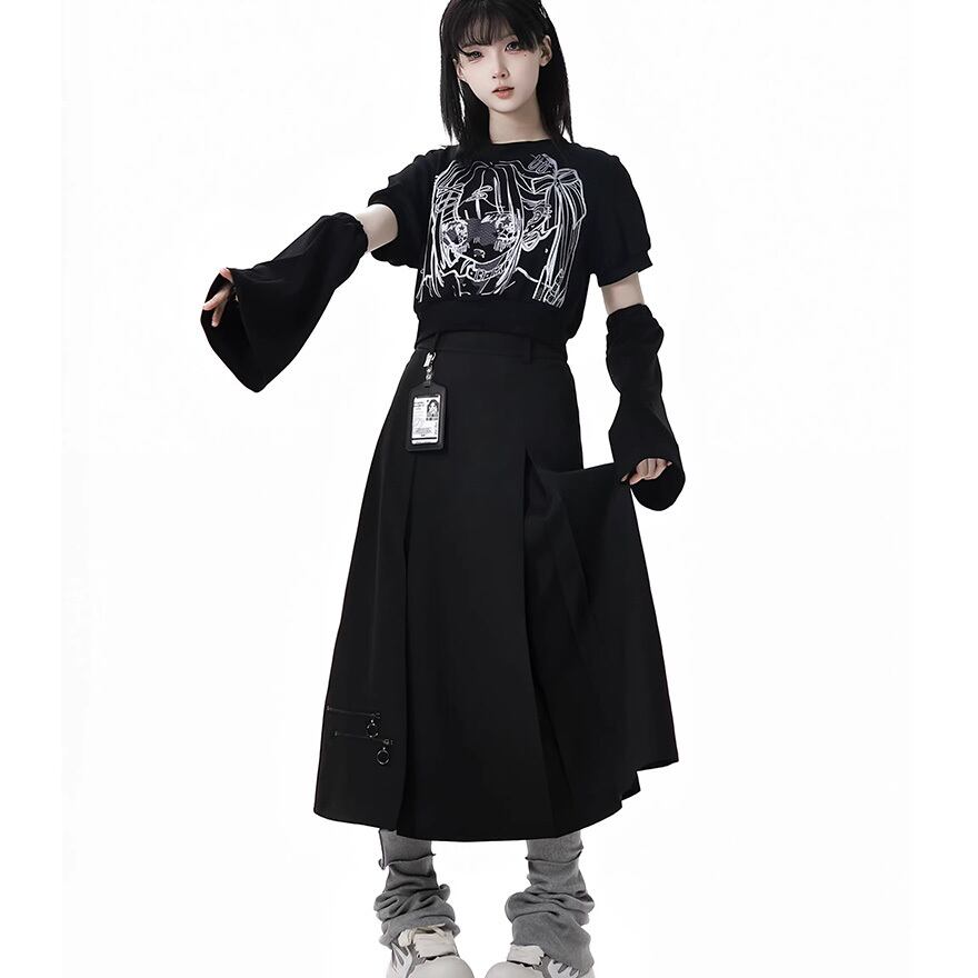 関連キーワード: #サブカル #地雷 #Tシャツ #クロップド丈 #アームカバー #継袖 #イラスト #アニメ #病みかわいい #闇かわいい #ストリートファッション #Y2K #サイバーパンク #モノトーン #ゴシック