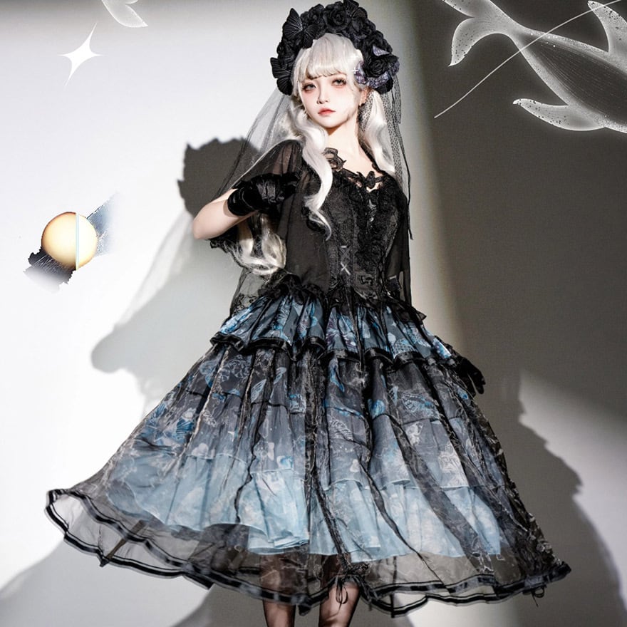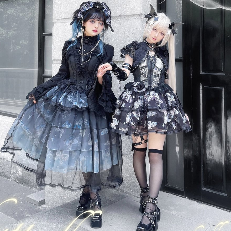 関連キーワード: #ゴスロリ #ジャンパースカート #JSK #地雷系 #サブカル #闇かわいい #病みかわいい #蝶々 #バタフライ #プリント #コルセット #レースアップ #イベント衣装 #コンカフェ #コスプレ #黒 #ダーク #華やか