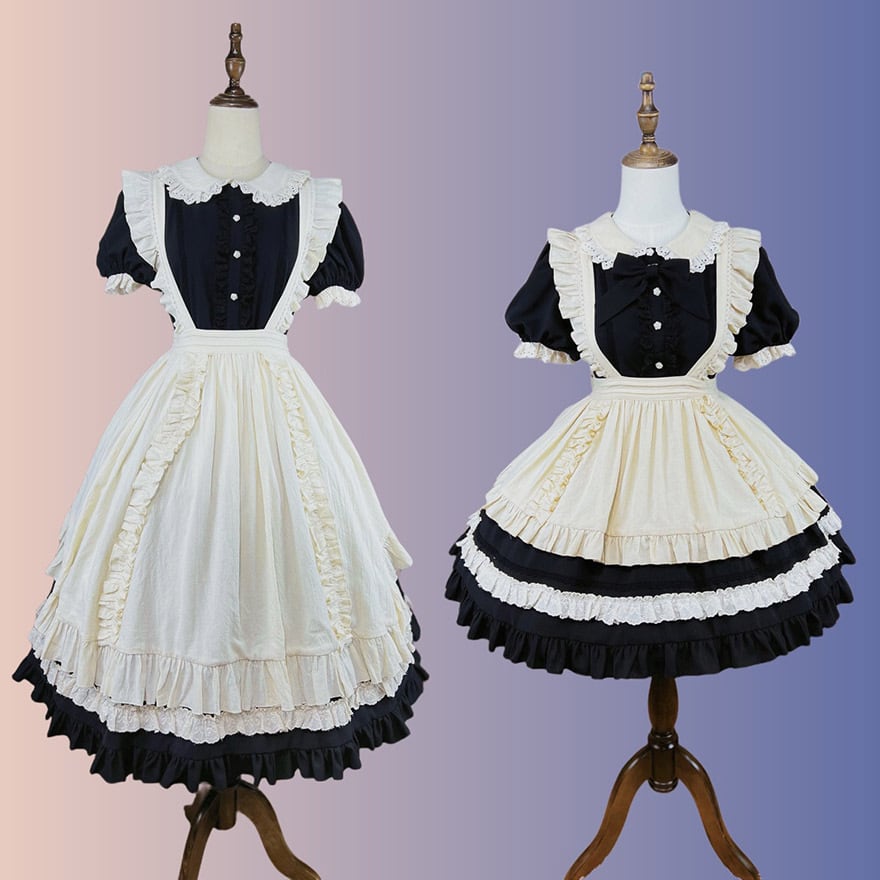 ワンピース単体でクラシカルロリータとして、別売りのエプロンと合わせて本格的なメイド服として、2WAYで楽しめるのが最大の魅力です。