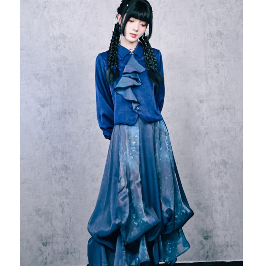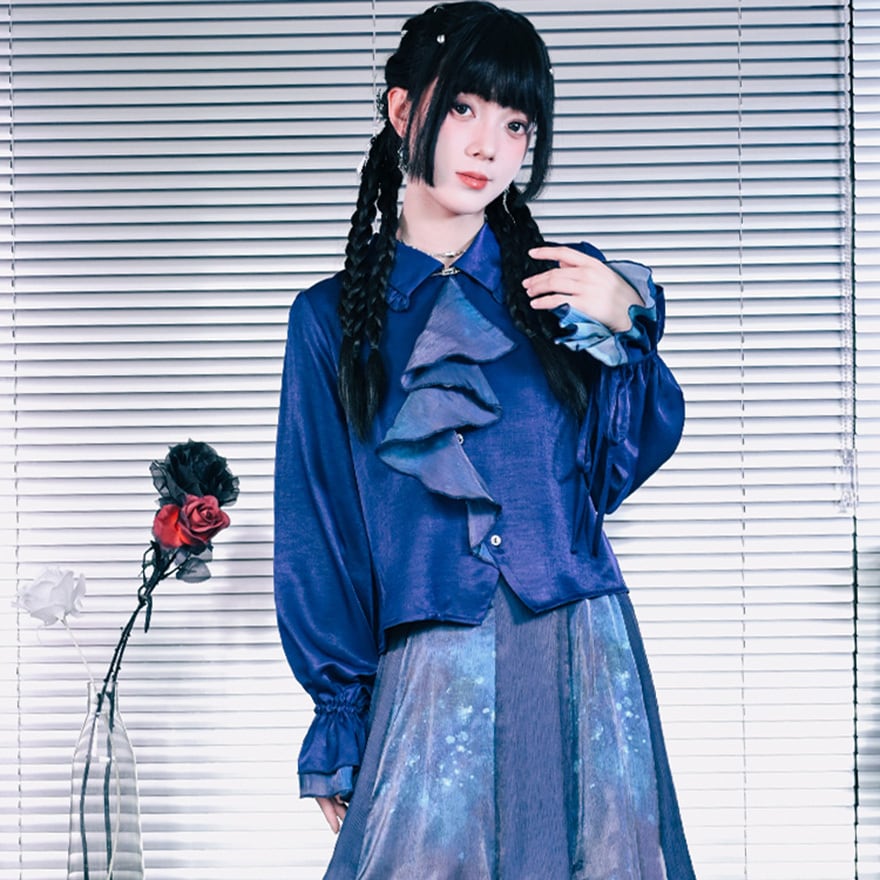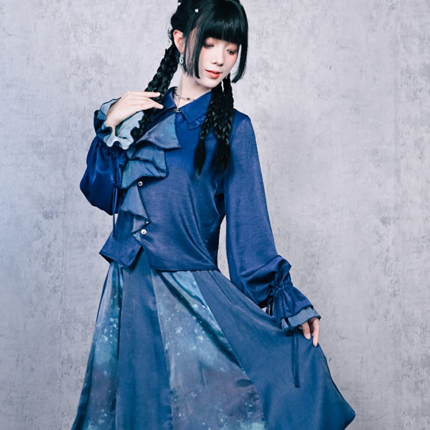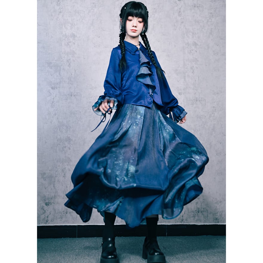 関連キーワード: #チャイナ #中華風 #チャイナブラウス #地雷系 #サブカル #ゴシック #ブラウス #長袖 #フリル #ランタンスリーブ #青 #ブルー #個性的 #参戦服