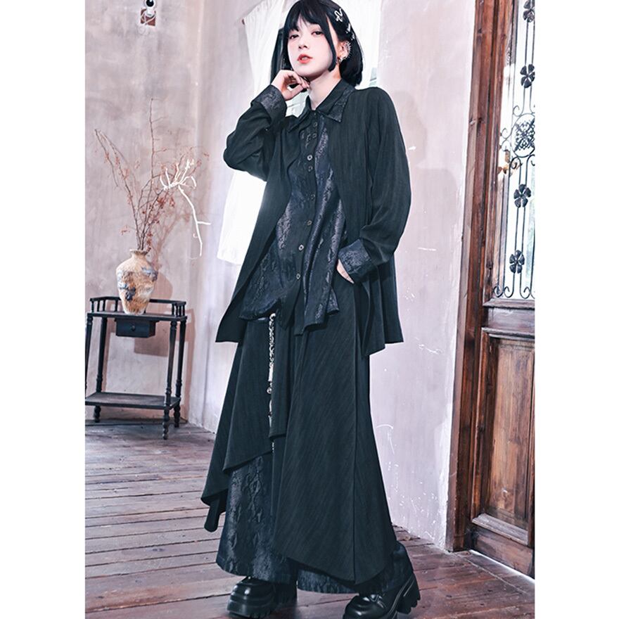 チャイニーズゴシック 古怪舎 ワイドパンツ 袴パンツ 蛇柄 アシンメトリー レイヤード 地雷系
