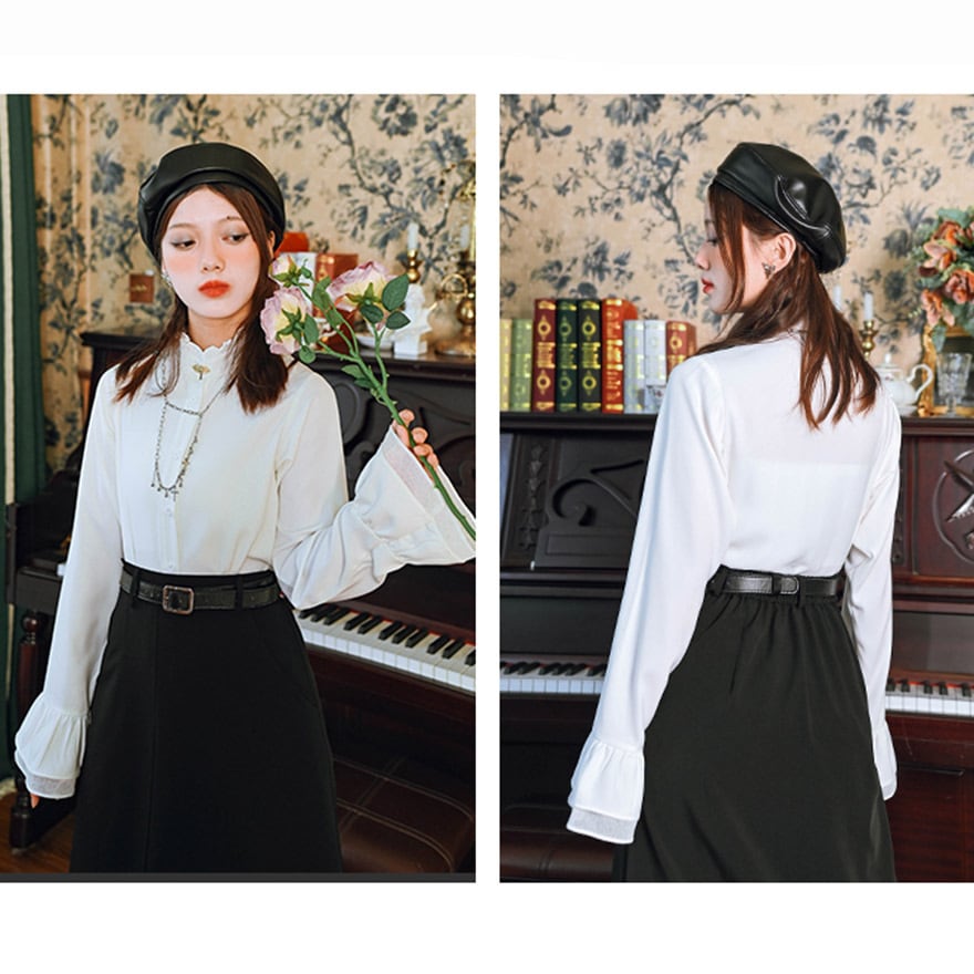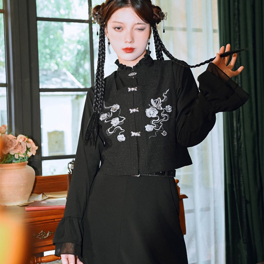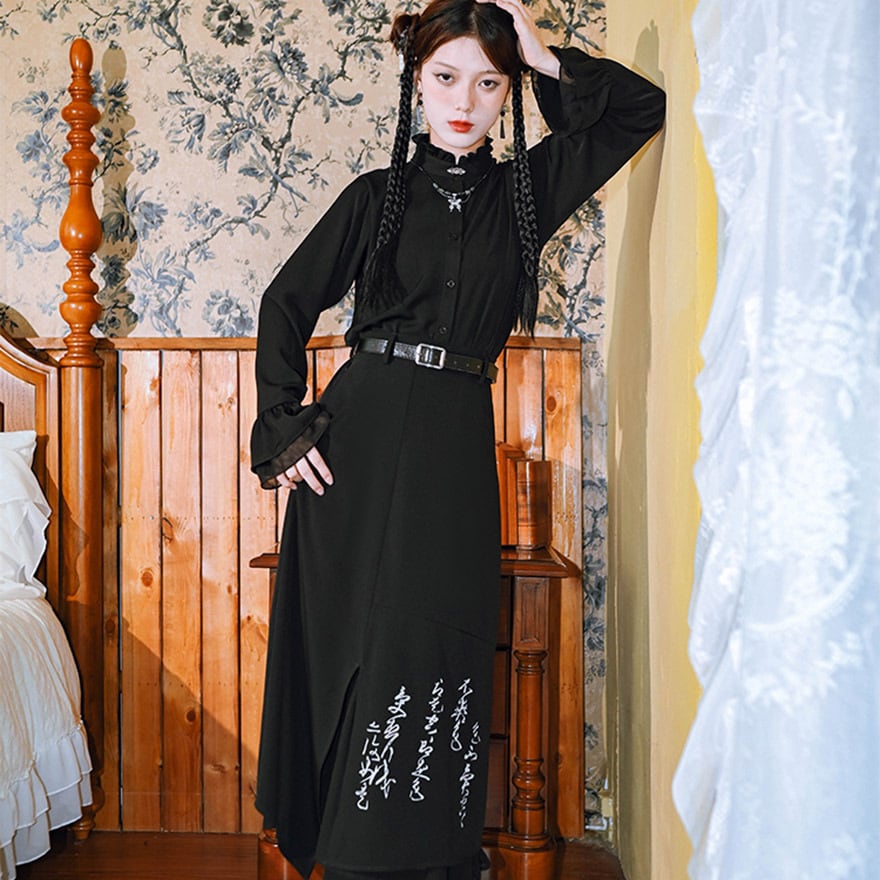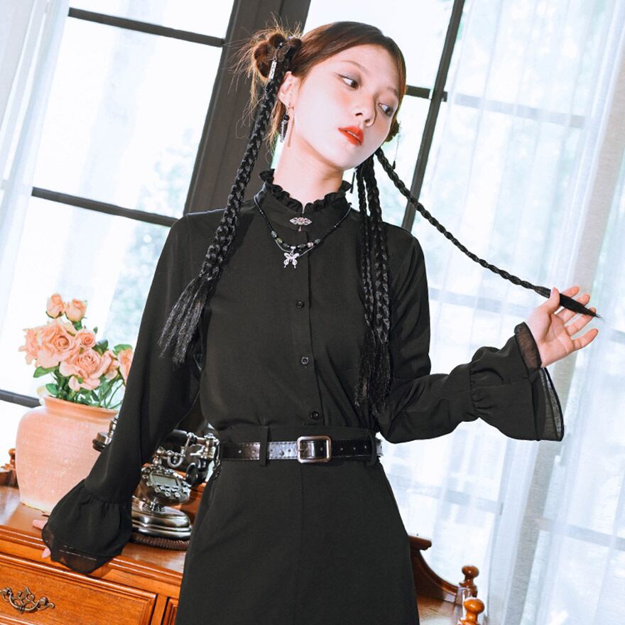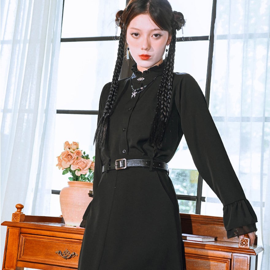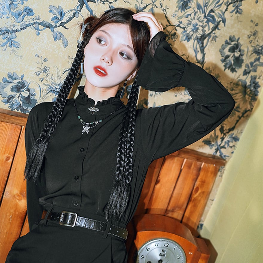関連キーワード: #チャイナ #中華風 #チャイナシャツ #サブカル #モード #ゴシック #地雷系 #ブラウス #長袖 #スタンドカラー #フリル #袖コンシャス #シアー #ベルスリーブ #個性的 #黒 #白 #参戦服