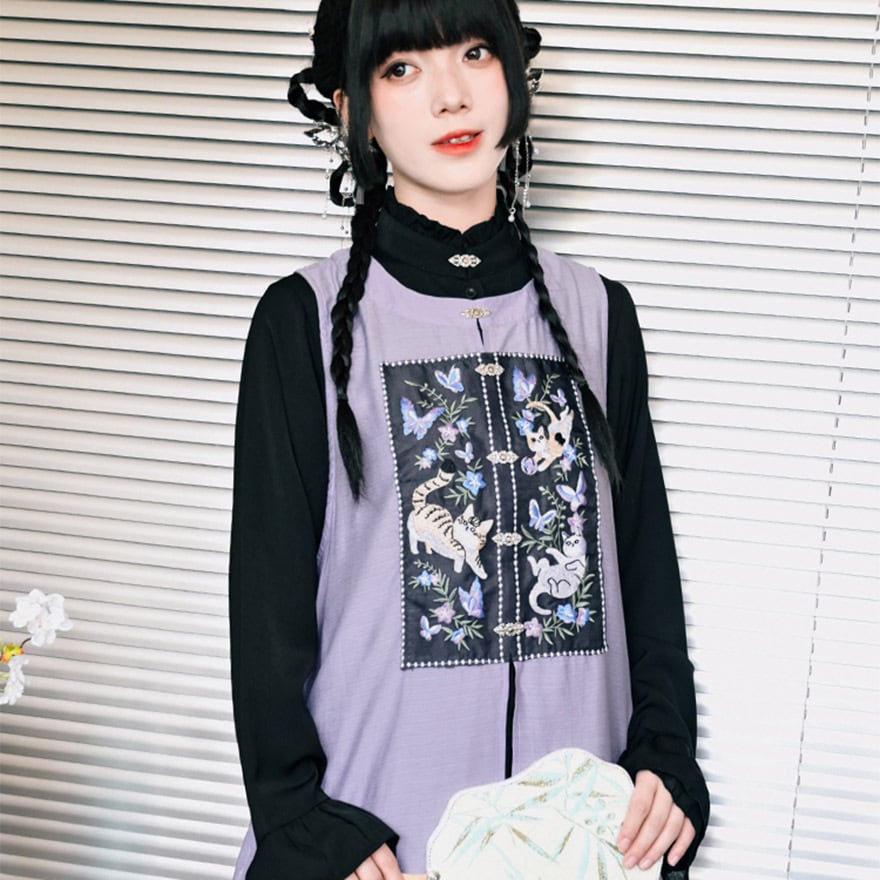 チャイニーズゴシック 古怪舎 長袖シャツ フリル スタンドカラー 袖コンシャス 大人ゴシック