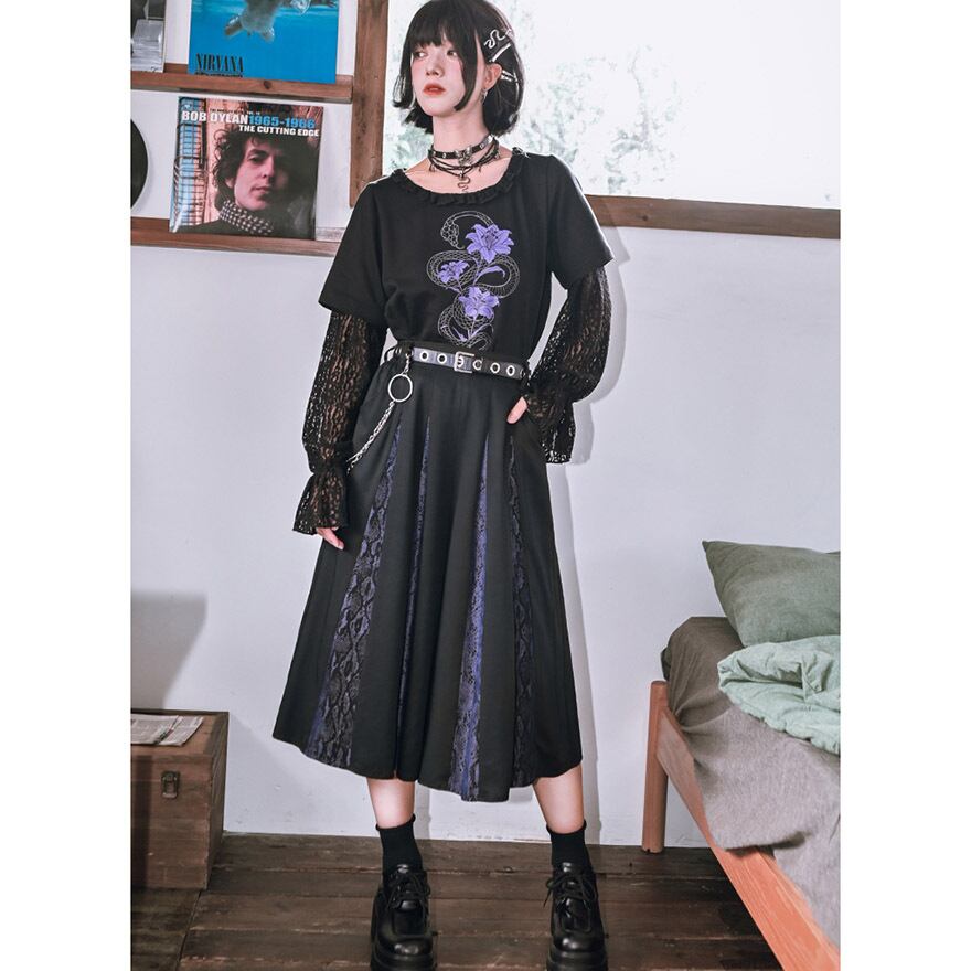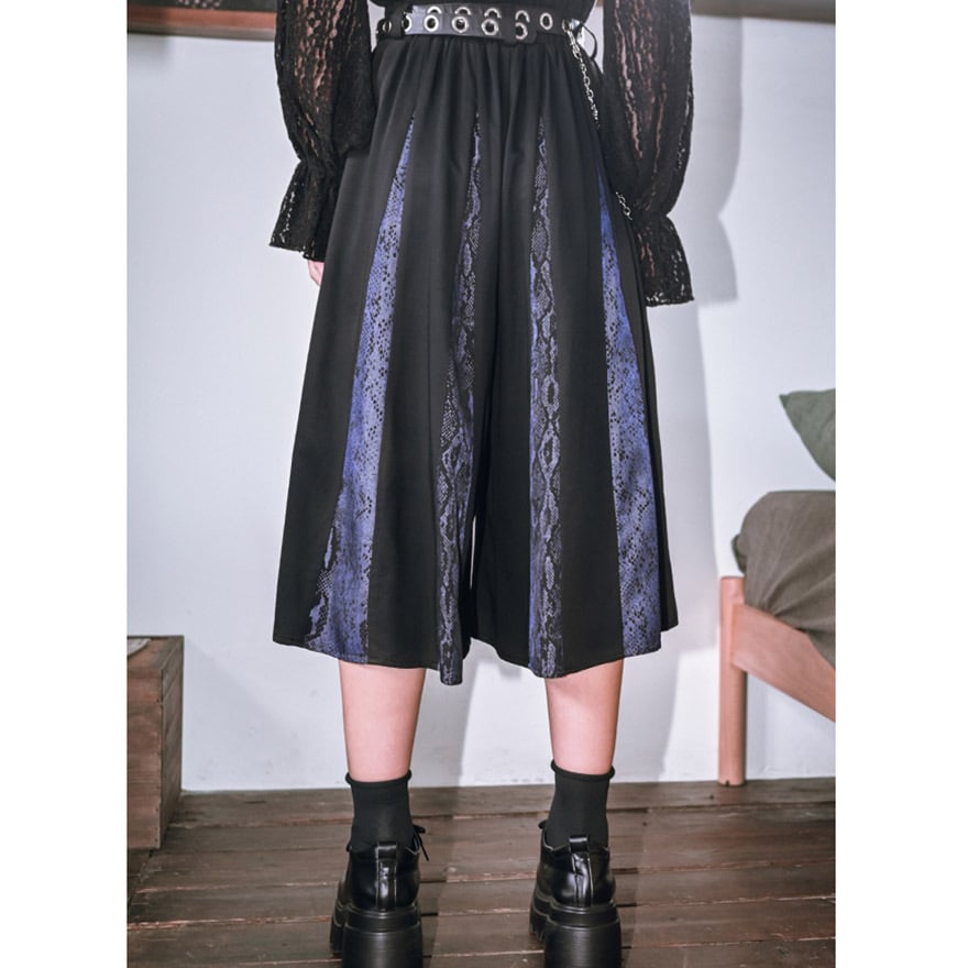 関連キーワード: #チャイナ #中華風 #チャイナパンツ #サブカル #地雷系 #パンク #ゴシック #ワイドパンツ #スカンツ #プリーツ #蛇柄 #パイソン柄 #個性的 #黒 #ブラック #参戦服 #甘辛ミックス