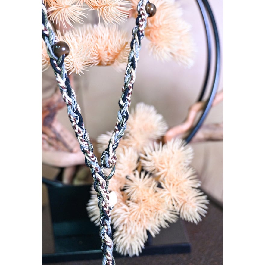 ところどころにあしらわれたウッドビーズや、先端のタッセル(フリンジ)が、ハンドクラフト感のある温かみをプラス。