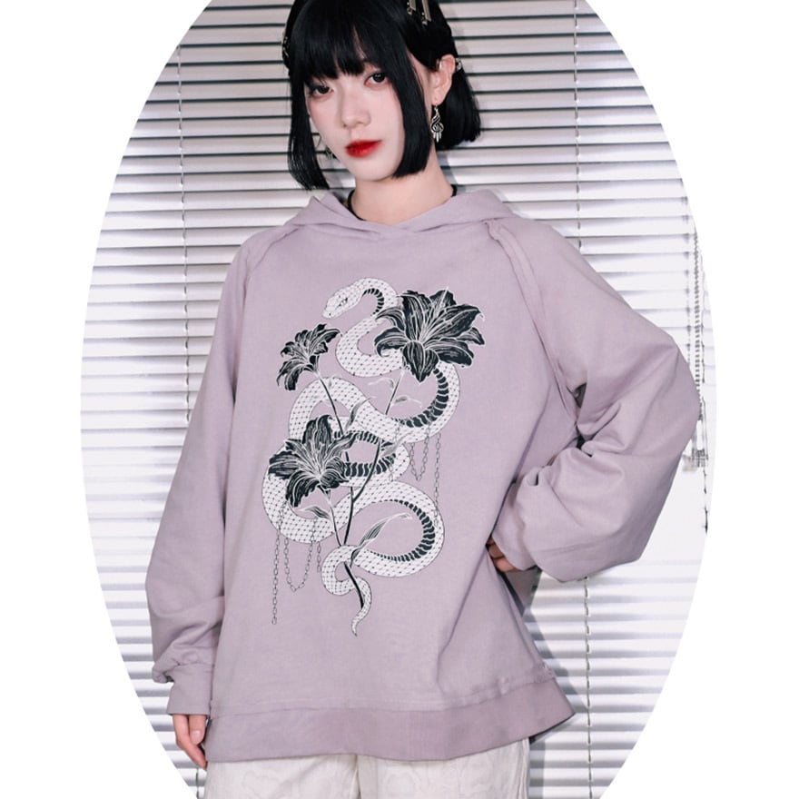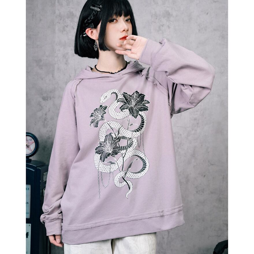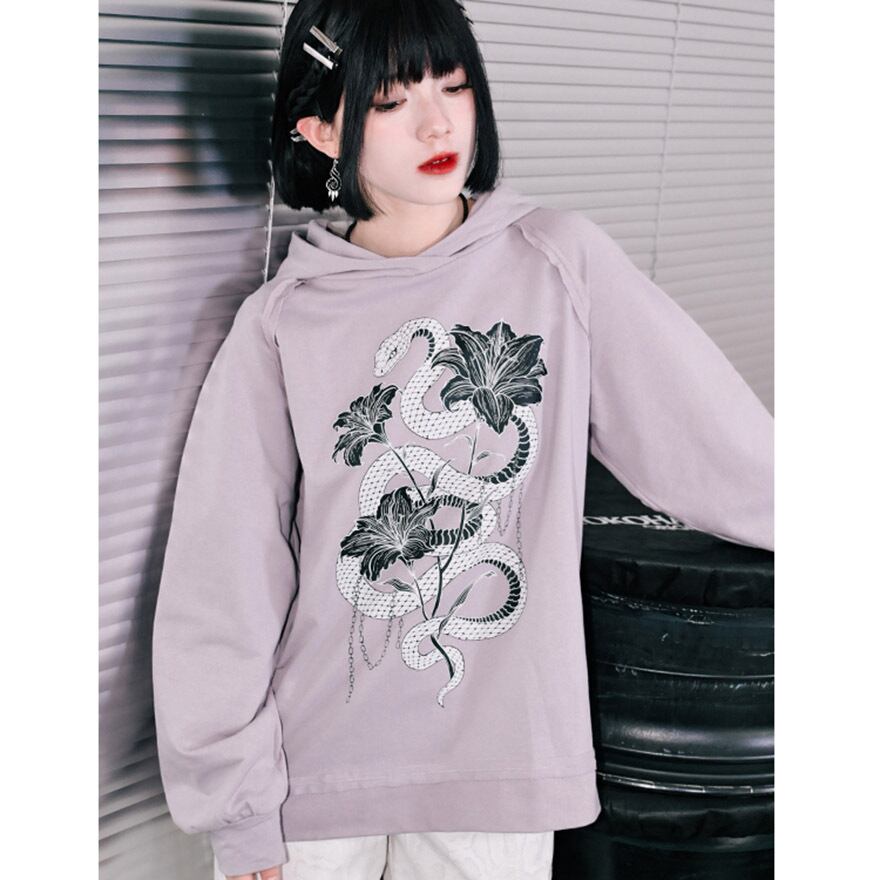 チャイニーズゴシック 古怪舎 フーディ コットン 蛇プリント ストリートファッション