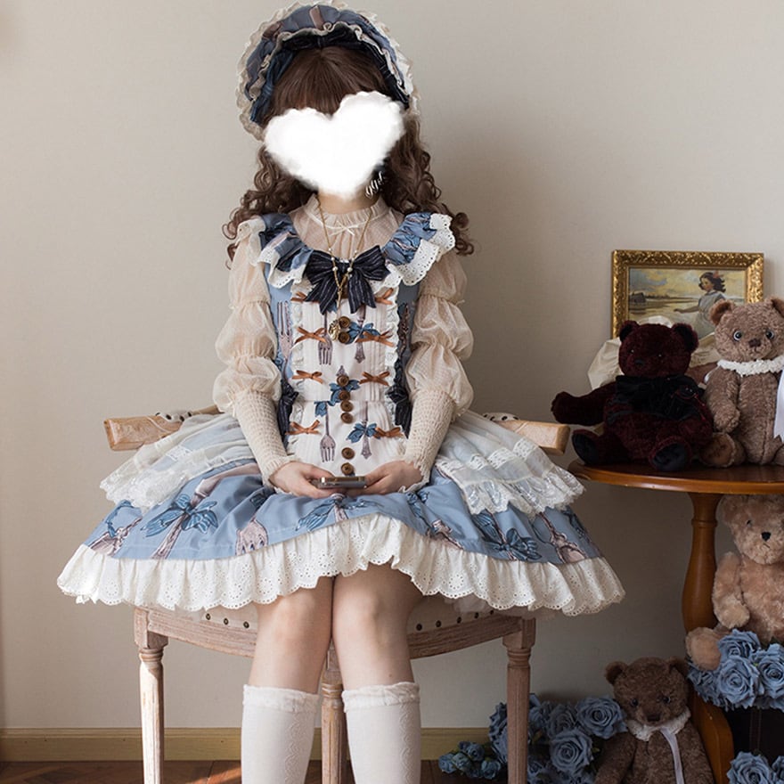 関連キーワード: #ロリータ #甘ロリ #ジャンパースカート #JSK #ブルー #レイヤード #フリル #レース #ドール #魔女 #カトラリー #可愛い