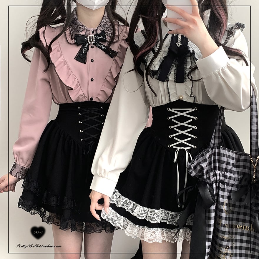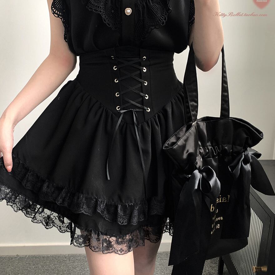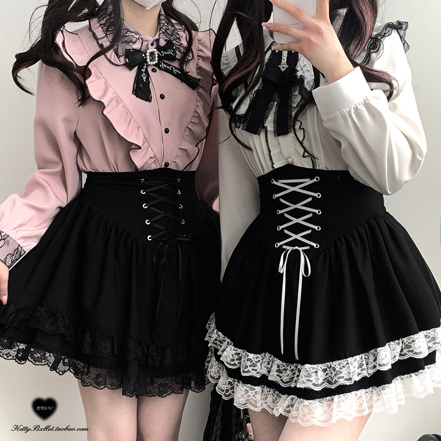 ロリィタ 地雷系 ミニスカ フレアスカート 編み上げ レース KittyBxllet 初心者