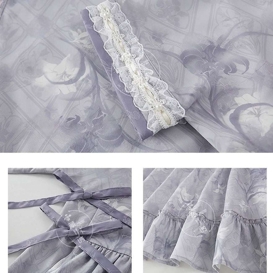 淡い藤色を基調とした、中華風デザインが目を惹くクラシカルロリィタのワンピースセットです。
