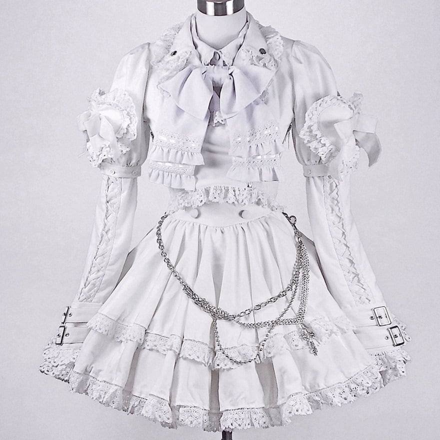 関連キーワード: #ゴスロリ #アイドル衣装 #ステージ衣装 #ライブコーデ #推し活 #ミニスカート #チェーン #レース #甘辛ミックス #地雷系 #サブカル #量産型 #パンク