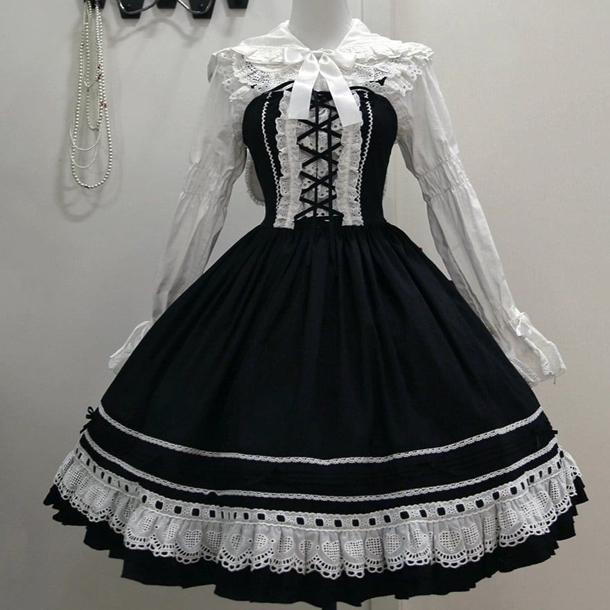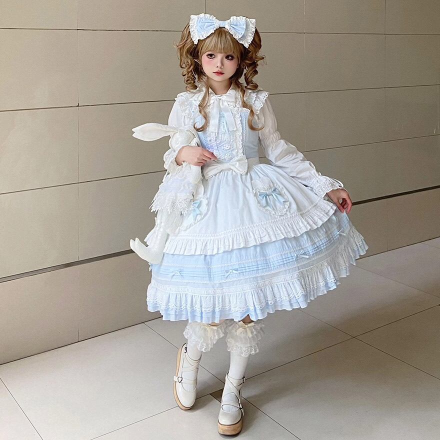 シンプルなワンピースも、このエプロンを一枚加えるだけで、一瞬にして本格的なメイド風ロリータファッションに生まれ変わります。