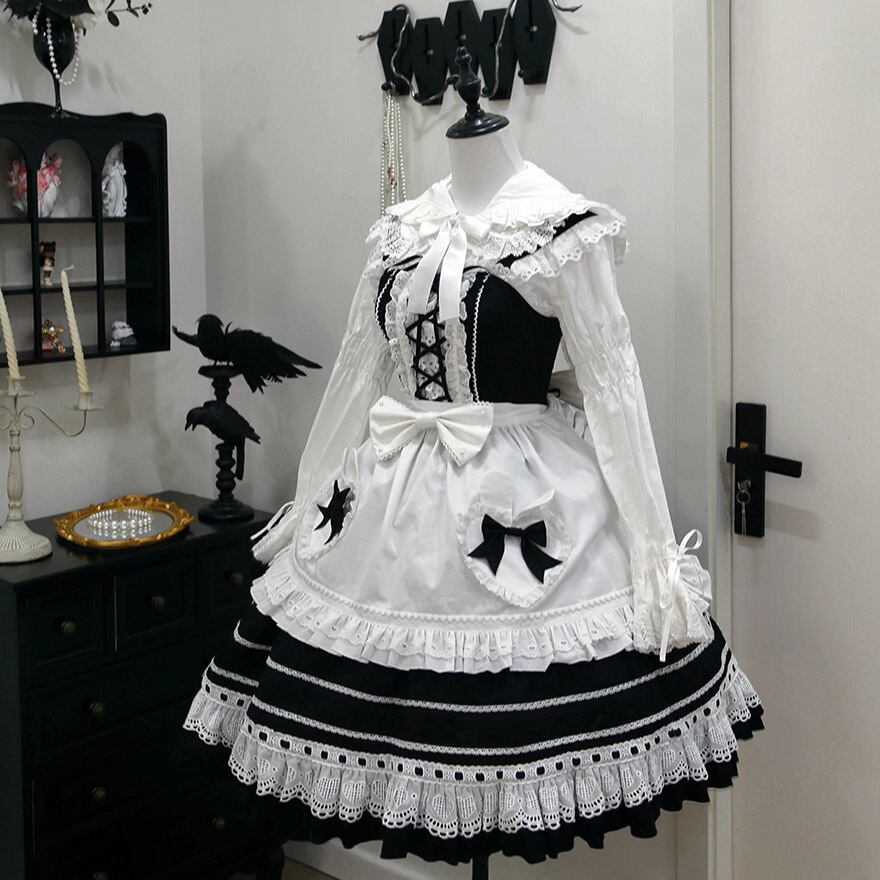 ゴスロリ地雷系 エプロン バックリボン メイド服 フリル リボン