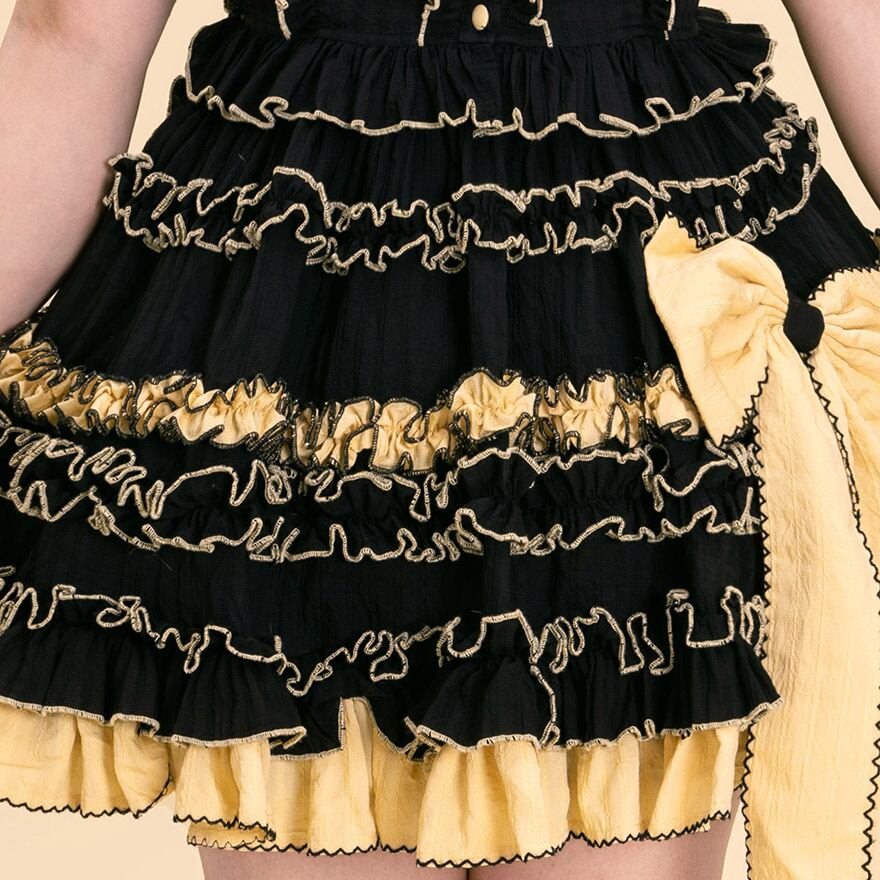 スカートは何層にも重なったフリルでできており、動くたびにふわふわと揺れて、ステージ上でのパフォーマンスを一層華やかに見せます。